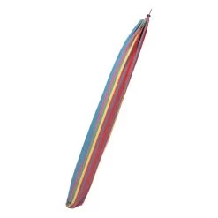 En toch ligt deze hangmat net zo lekker als een hangmat van 100% katoen. Ook zorgt het polyester dat de hangmat minder uitrekt en beter bestand is tegen een regenbui.