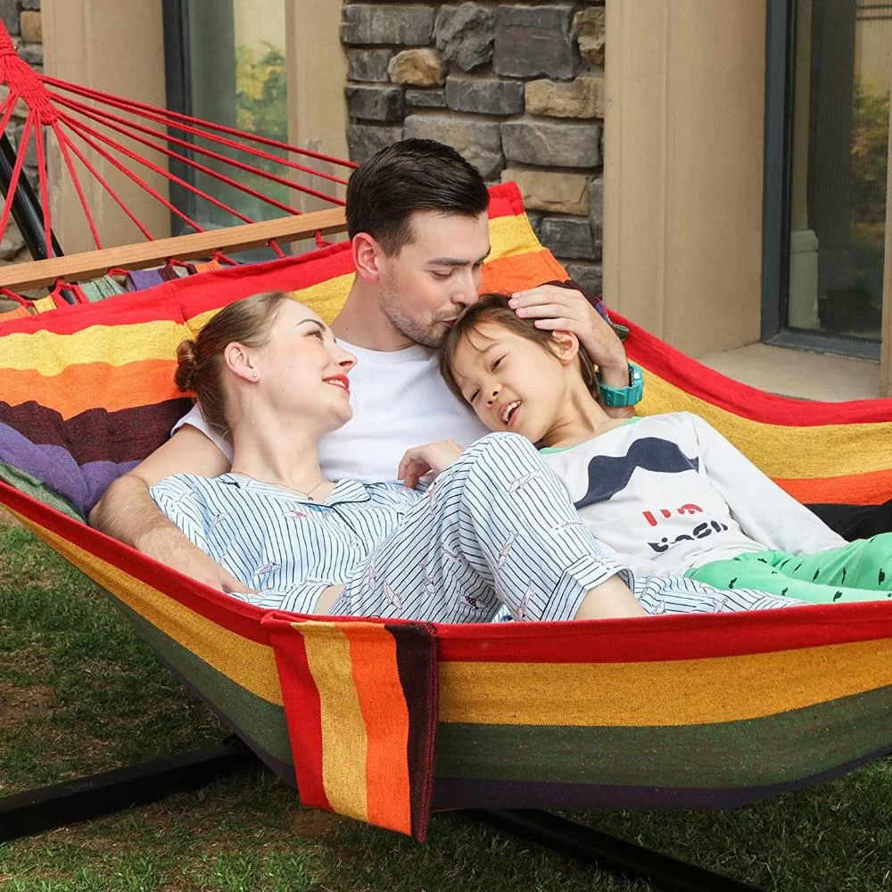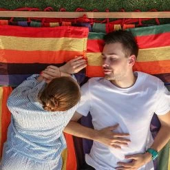 Als u een dutje wilt doen tussen de bomen, is deze hangmat de perfecte keuze voor u! Kleurrijk en comfortabel. En bovendien geschikt voor 2 personen.