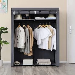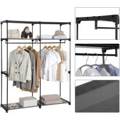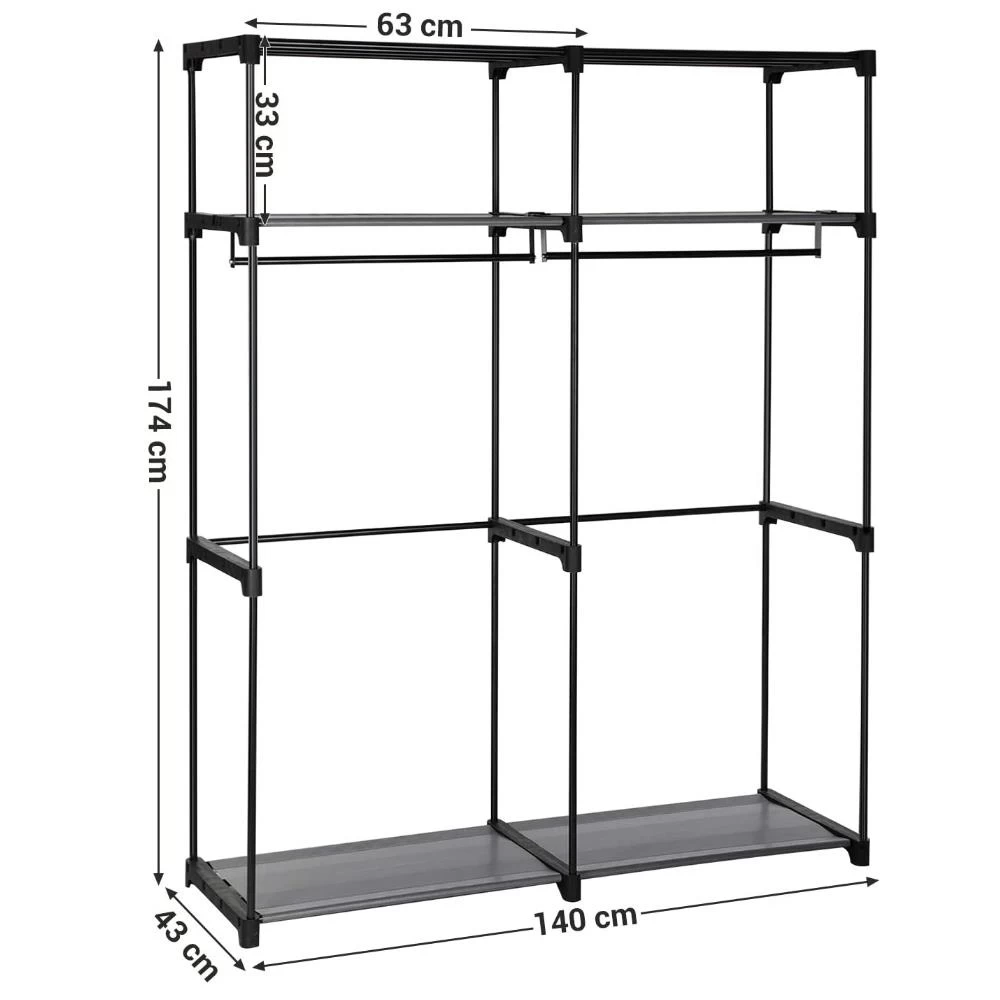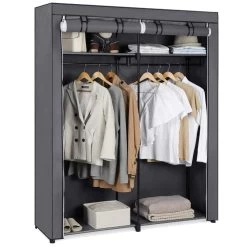 Dankzij deze kledingkast in stof en metaal kan je jouw kleding snel een plaats geven. Het slimme design van deze kast zorgt ervoor dat je ze gemakkelijk kan monteren of terug opbergen.