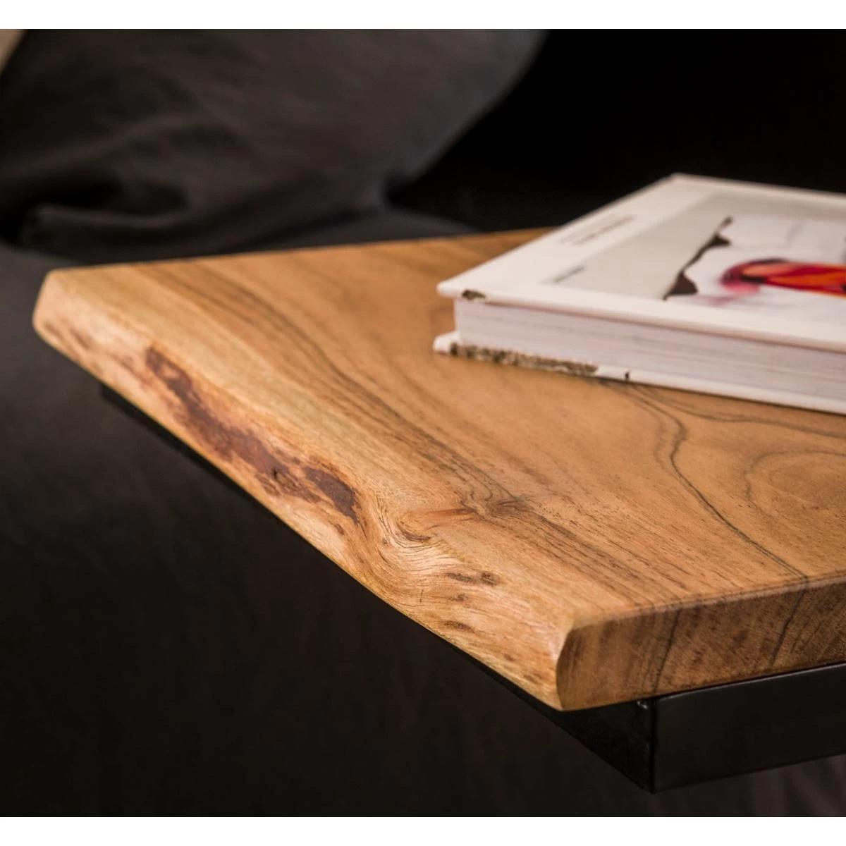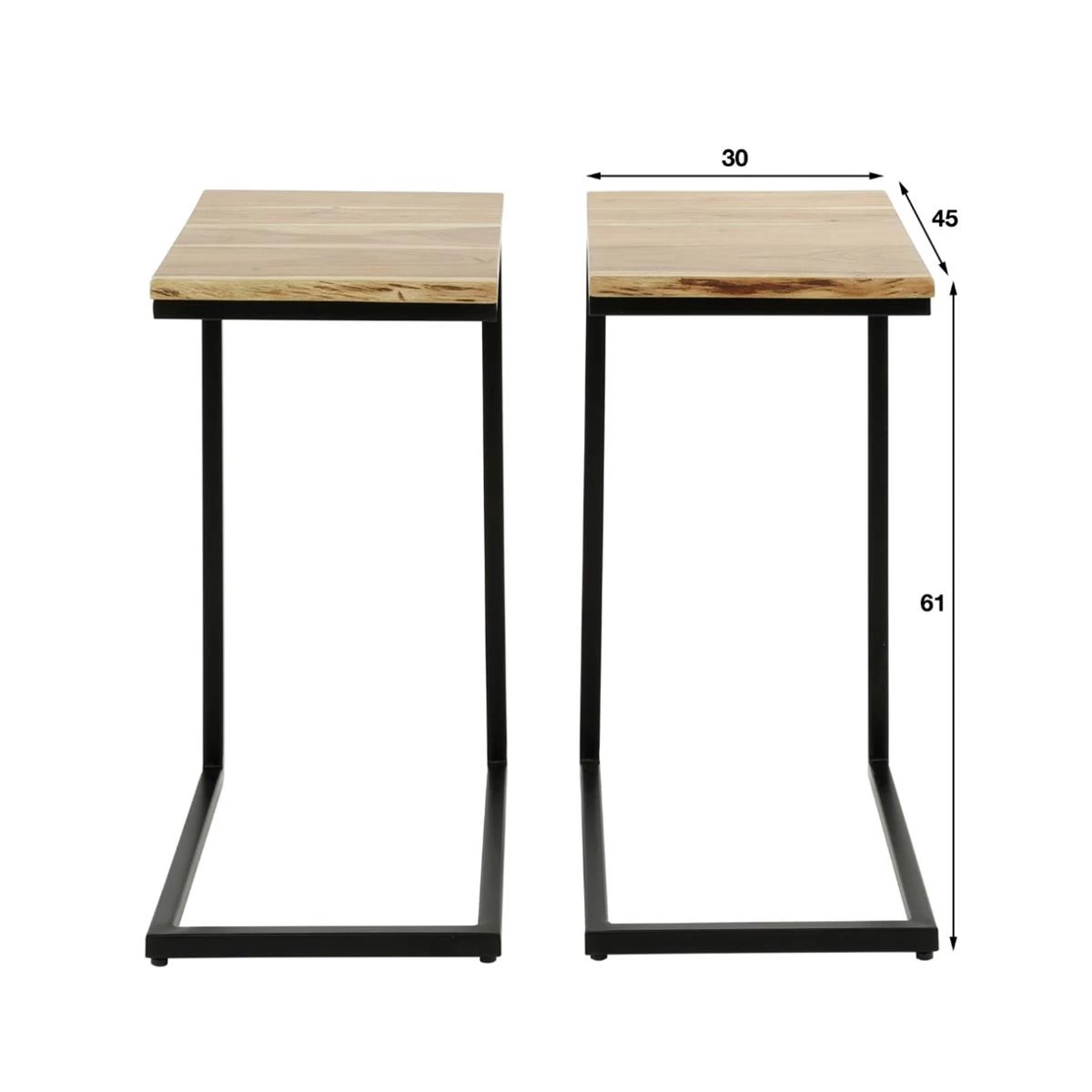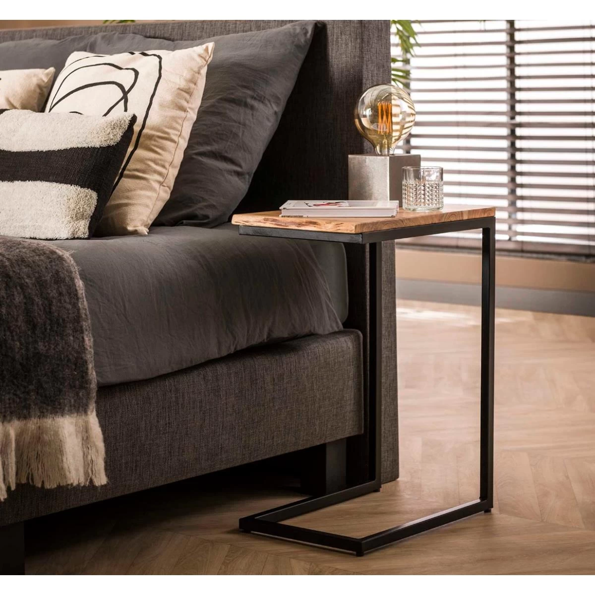 Dit bed tafeltje is een set van 2, uitgevoerd in acacia hout. De tafeltjes zijn speciaal ontworpen voor kleinere ruimtes en kunnen aan beide kanten van het bed geplaatst worden, maar bijvoorbeeld ook over het bed of de bank.