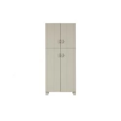 De Mees 4-deurs kast is gevormd uit geschuurd grenenhout afgewerkt in een frisse kleur: dust. De achterzijde van de kast is gemaakt van geperst HDF materiaal met een mist-kleurige afwerking.