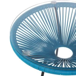 Deze multifunctionele set, bestaande uit 2 stoelen en een tafel, is geschikt voor zowel binnen als buiten. De zitting is voorzien van een PE-rotan vlechtwerk en een robuust frame van gepoedercoat staal. Het tafelblad is gemaakt van gehard glas en wo