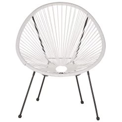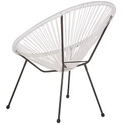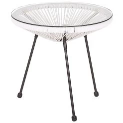 Deze vrolijke set bestaat uit een kleine ronde tafel en twee comfortabele stoelen. De stoelen zijn gemaakt van een stevige en bijzonder onderhoudsvriendelijke bedrading van wit kunststof rotan gecombineerd met een stevig, zwart stalen frame. De tafe