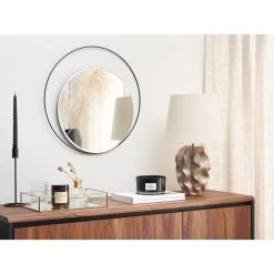 Deze ronde spiegel betovert met zijn gedetailleerde vorm. Het accentstuk past perfect bij een minimalistisch of Scandinavisch interieur, en het zwarte metalen frame dient als een getuigenis van de duurzaamheid en het voortreffelijke vakmanschap. Han