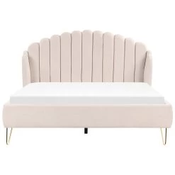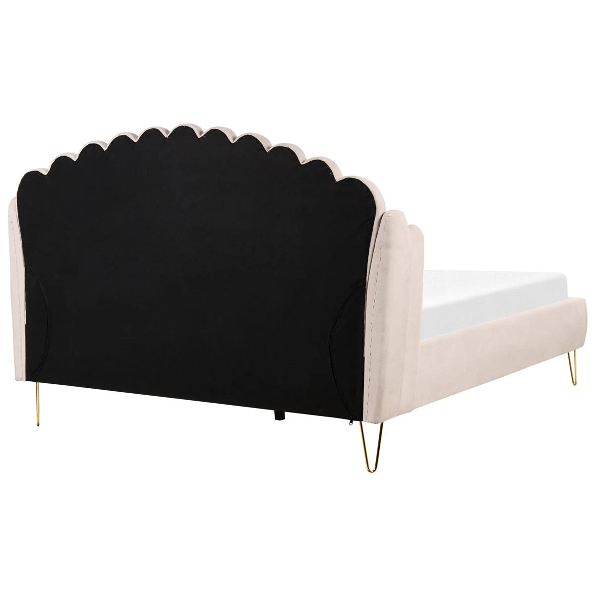 Maak kennis met het bed van je dromen. Dit met stof beklede tweepersoonsbed in een retro geïnspireerde stijl zal het pronkstuk van elke slaapkamer zijn. Compleet met gouden haarpin poten en een hoofdbord met gegroefde schelpen hoofdbord, zal het een
