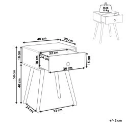 Organiseer jouw slaapkamer met dit nachtkastje. Het heeft een lade, waarin je je telefoonoplader, je favoriete boek of andere belangrijke items kunt opbergen. Het blad van het nachtkastje kan worden gebruikt voor je alarmklok of decoratieve items. H
