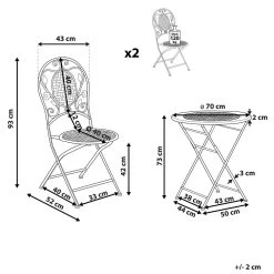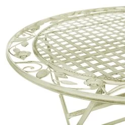 Voeg een vleugje Provençaalse stijl toe aan je balkon of tuin met deze elegante balkonset. De bistroset is gemaakt van gepoedercoat ijzer en heeft een verweerd effect en een opengewerkt ontwerp met bloemenornamenten. De balkonset bevat twee stoelen