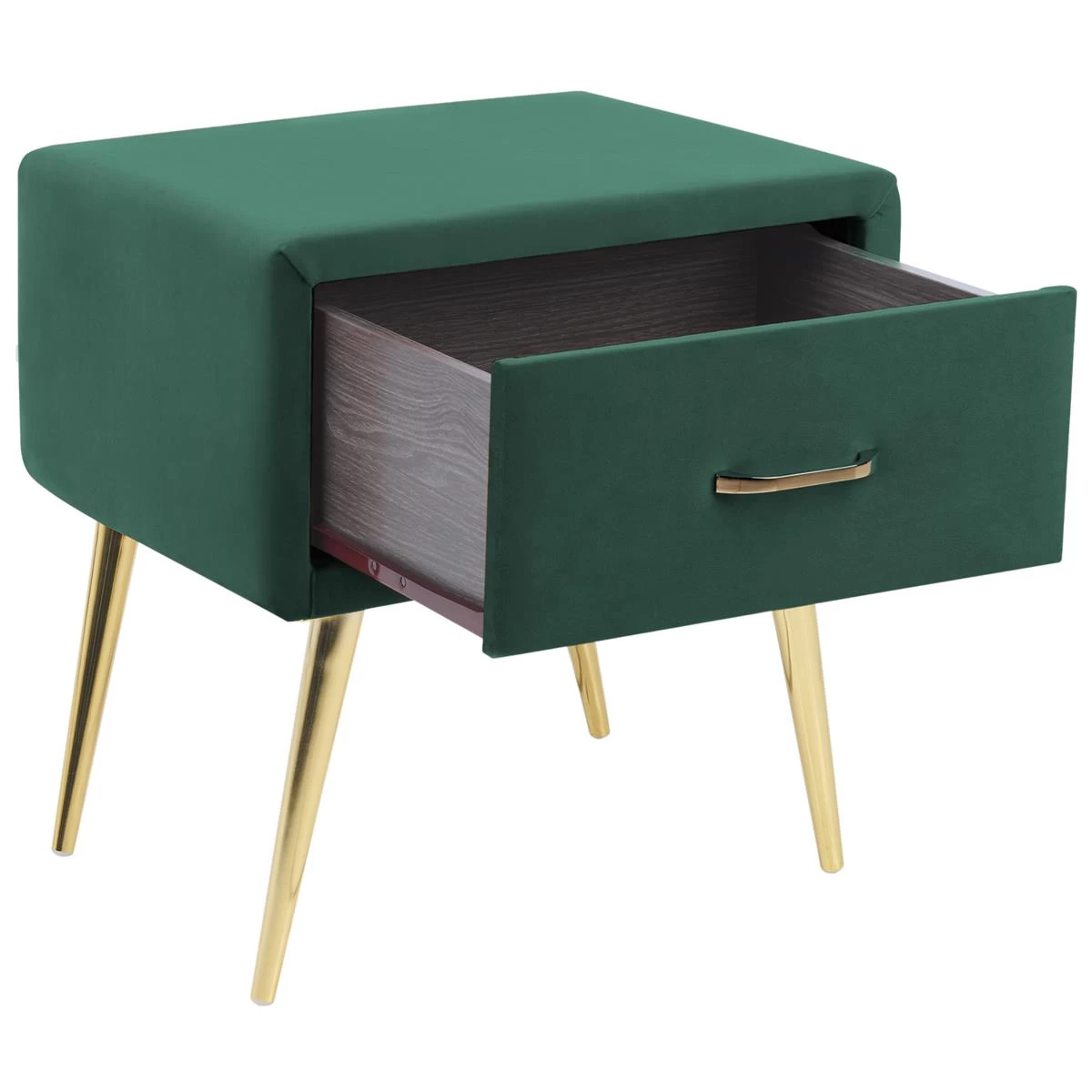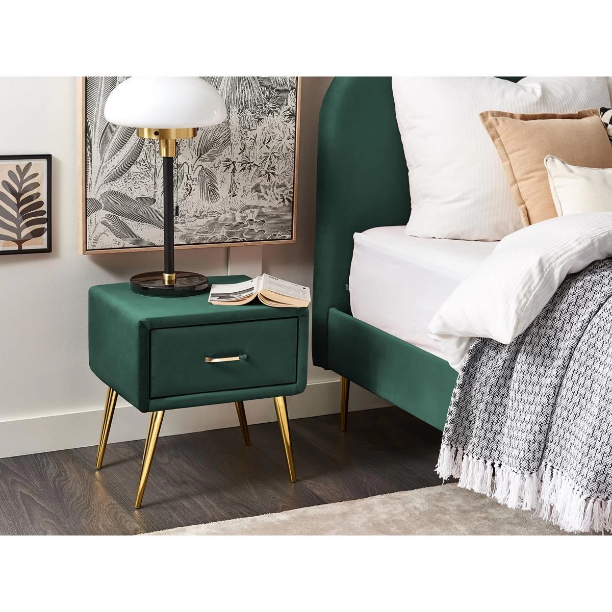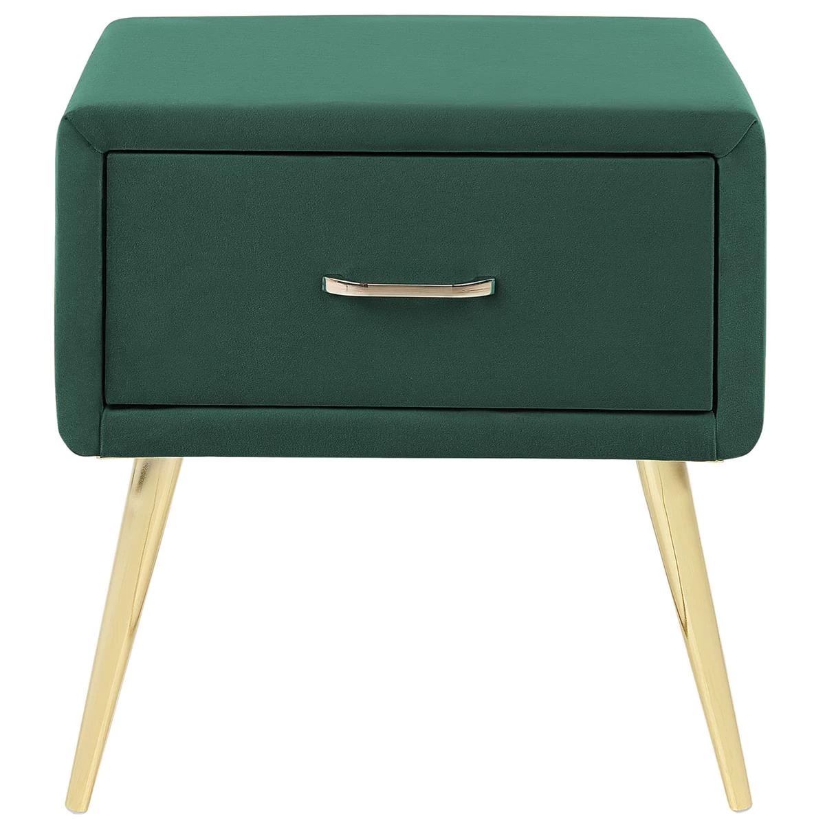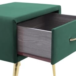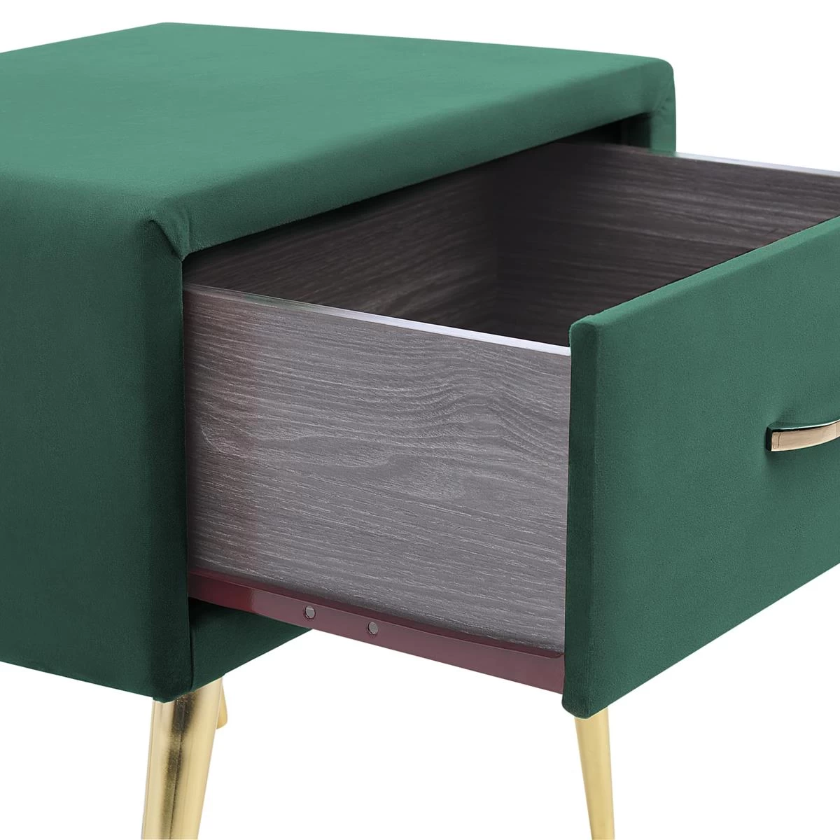 Met zijn elegante design is dit nachtkastje een uitstekende aanvulling op je interieur. Het is gemaakt van duurzaam hout en bekleed met fijn, hoogwaardig fluweel. De soepel lopende lade met decoratieve handgreep biedt voldoende ruimte om kleine spul