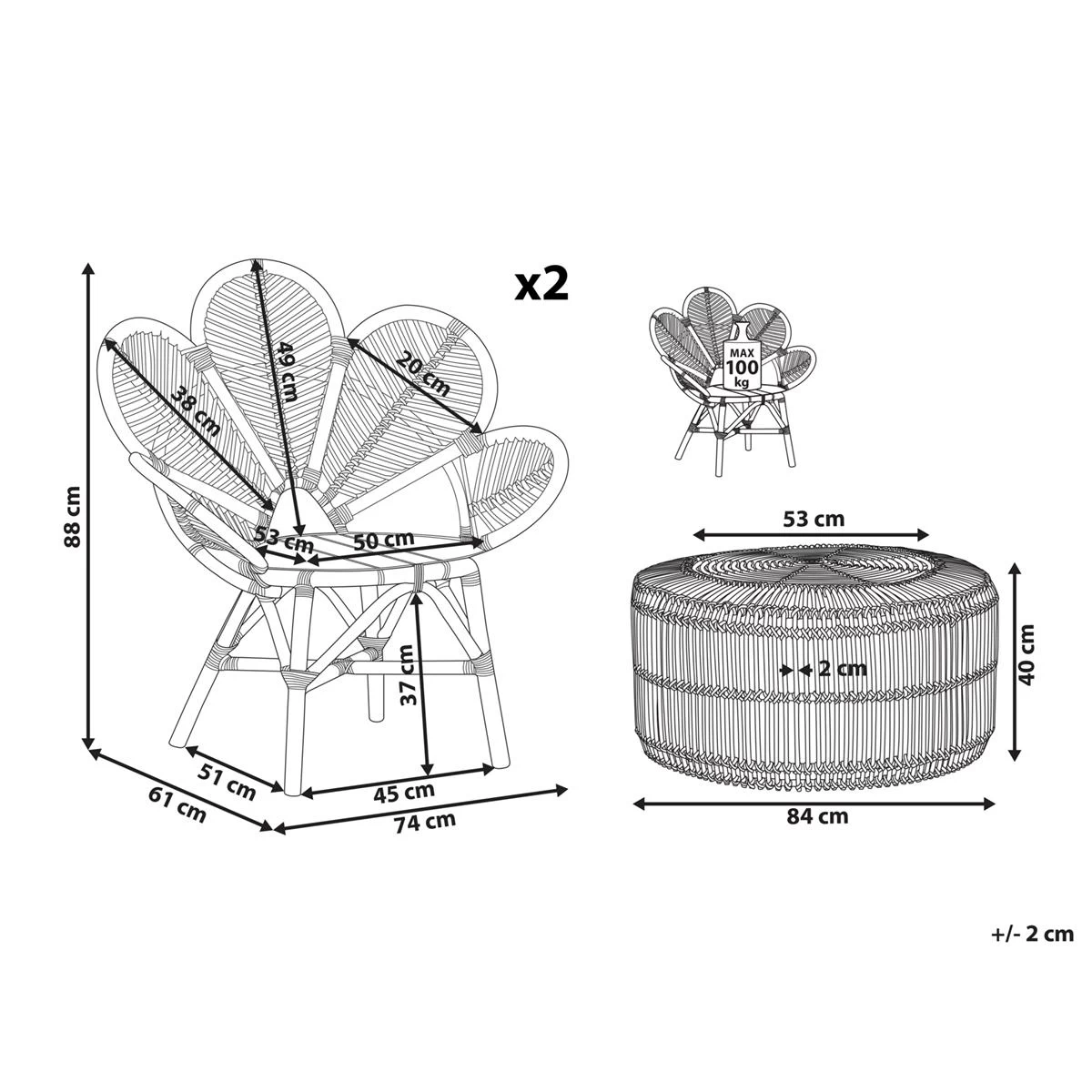 Deze balkonset is een alles-in-één oplossing om op je balkon van warme avonden te genieten met je favoriete drankje in de hand. Hoog comfort wordt gegarandeerd door zachte katoenen zitkussens en ronde rugleuningen die lijken op een pauwenstaart. De