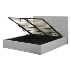 Met dit opbergbed ziet uw slaapkamer er moderner en gezelliger uit, terwijl u toch alles netjes houdt. Het frame is gemaakt van stevig materiaal en bekleed met een zacht aanvoelende grijze stof. Het bed biedt extra opbergruimte onder de lattenbodem,