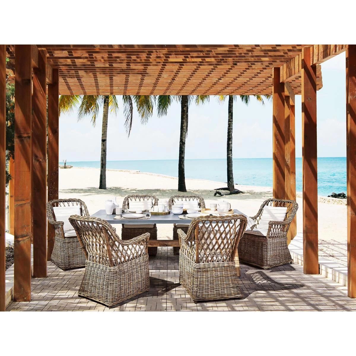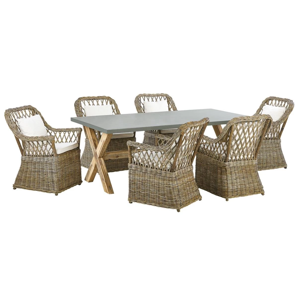 Maak je klaar voor de zomer en verander je terras in een stijlvolle eethoek. Deze set, bestaande uit een ruime tafel en 6 rotan stoelen, garandeert het hoogste comfort. Het tafelblad is gemaakt van duurzaam vezelcement, wat zorgt voor een lange leve