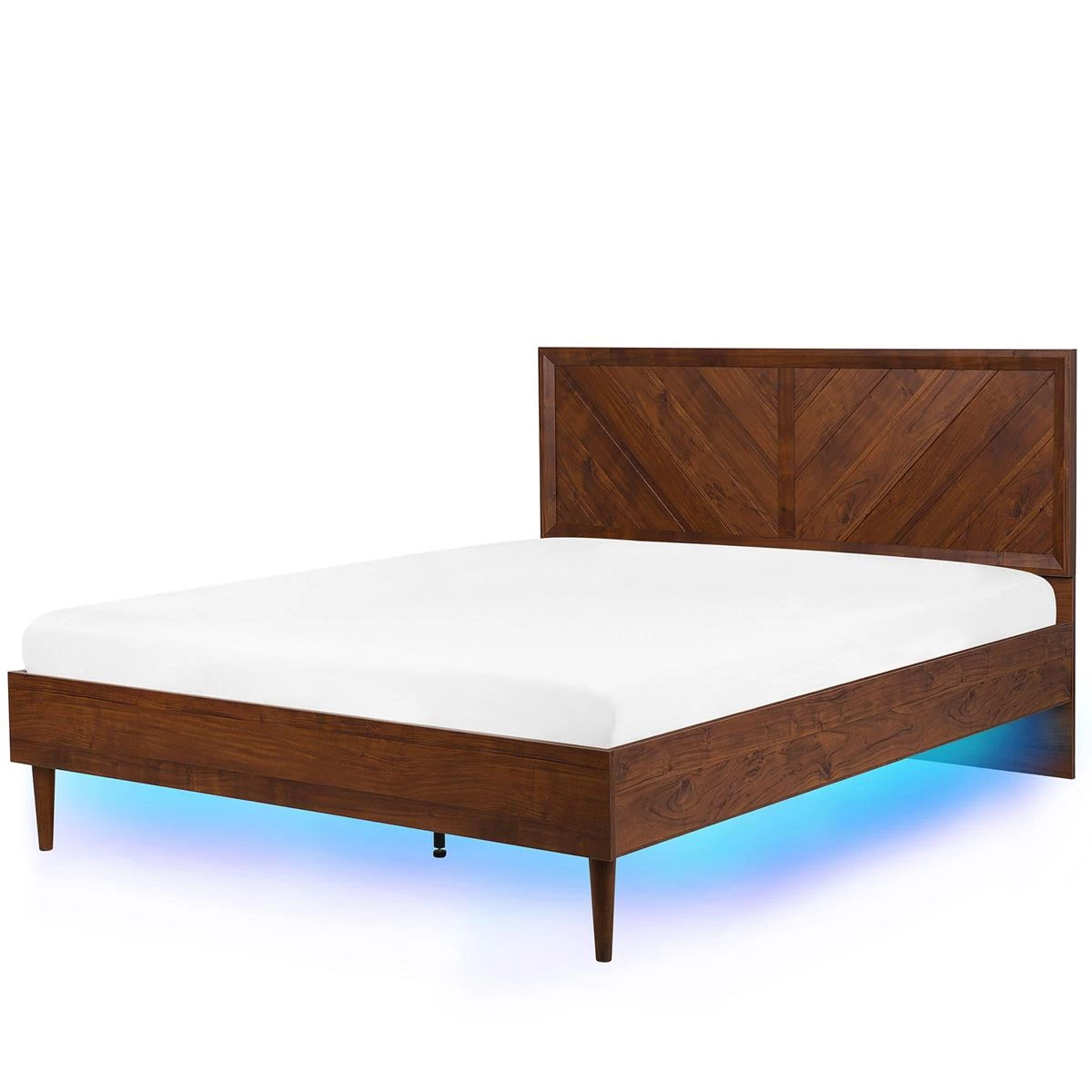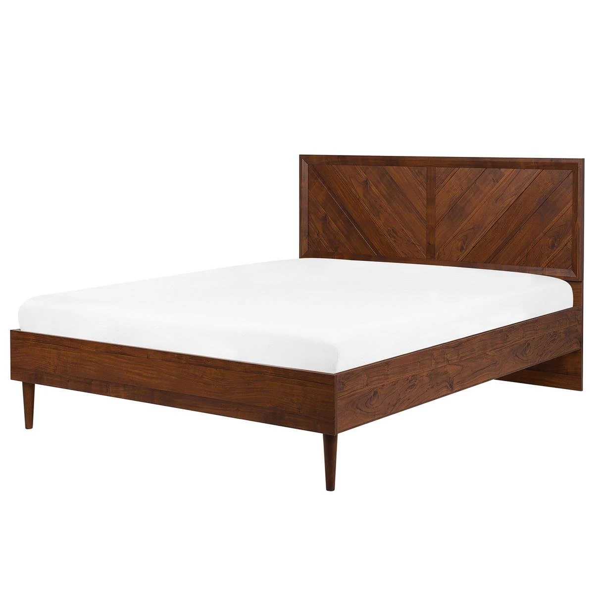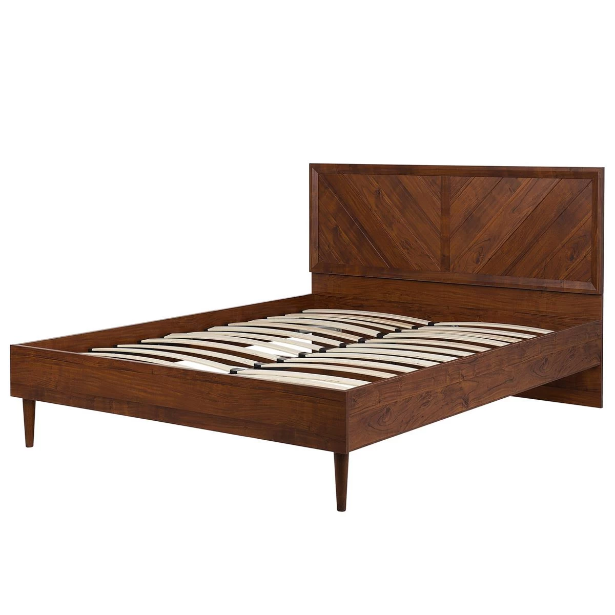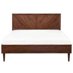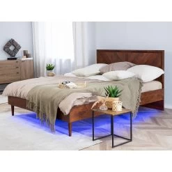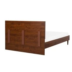Dit rustieke bed is een sfeervol element van de slaapkamerinrichting. Hij is gemaakt van een stabiel en gemakkelijk te reinigen materiaal, dat vezelplaat is, gaat het bed vele jaren mee. Dankzij de donkerbruine afwerking geven de meubels een knus ka