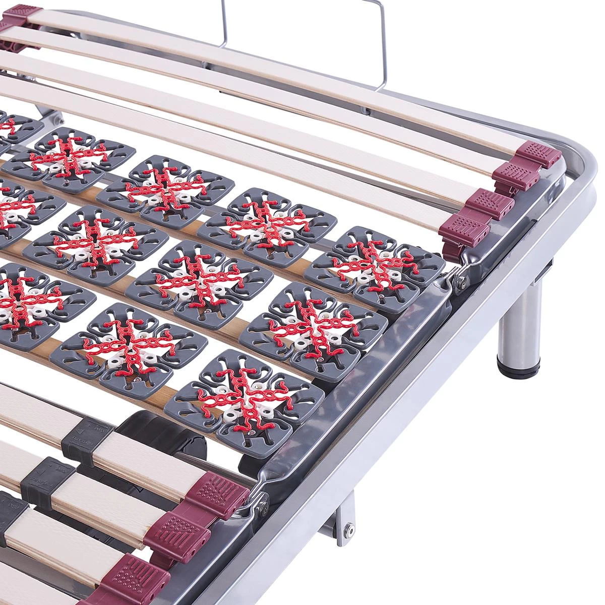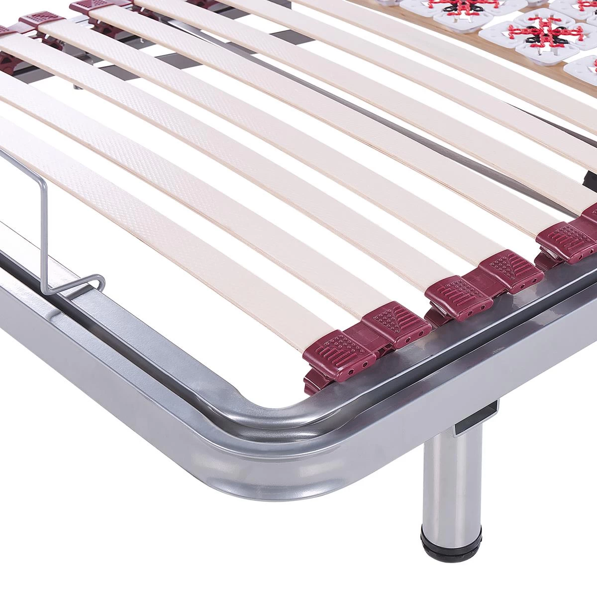 Zorg voor een goede nachtrust dankzij deze stabiele en duurzame stalen bedbodem. Het beschikt over flexibele maar sterke latten gemaakt van duurzaam berkenhout, die op hun plaats worden gehouden met rubberen houders. Het hoofd- en voeteneinde kunnen