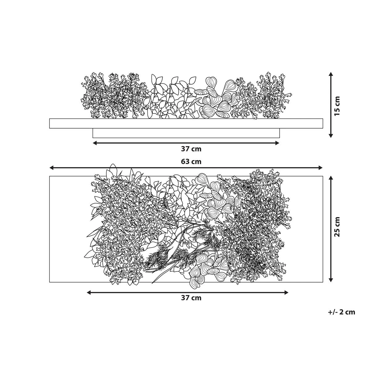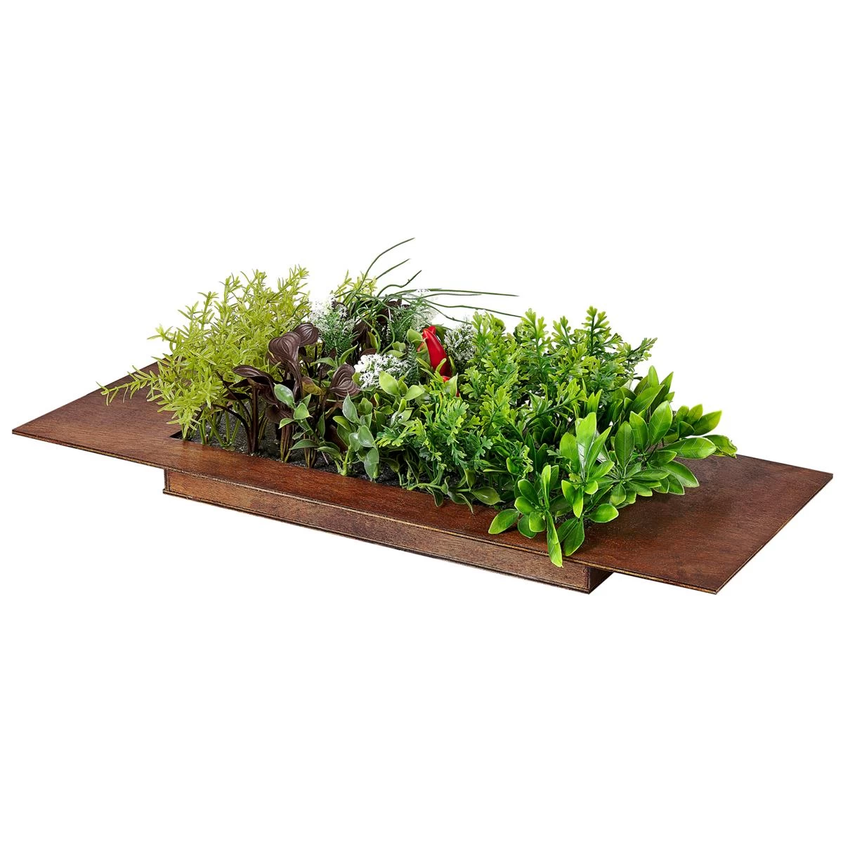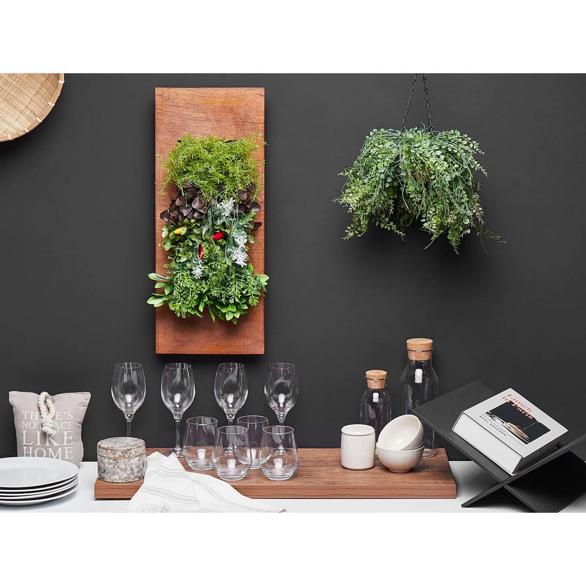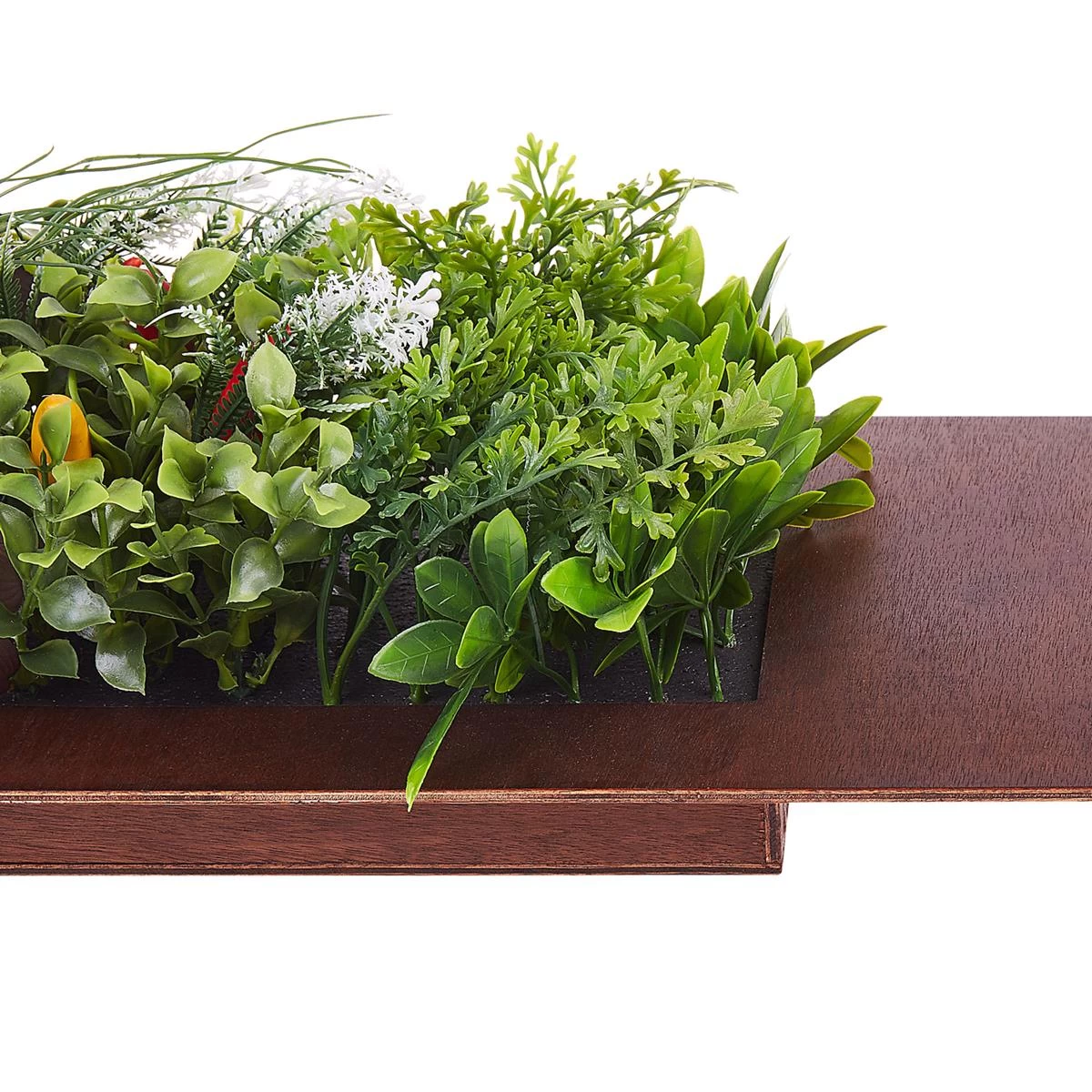 Of je nu groene vingers hebt of niet, je kunt je woonkamer altijd opvullen met een paar mooie groene decoratiestukken. Dit rechthoekige frame in een houtachtige afwerking is gevuld met authentiek ogende nepplanten op een bed van groen. Het vormt een