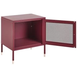 Dit stijlvolle nachtkastje heeft een trendy kleur en modern design, perfect voor elke slaapkamer. Het kastje is gemaakt van gecoat staal en heeft een metalen mesh deur voor een luxe look. Het kastje zorgt voor extra opslag ruimte en op de bovenkant
