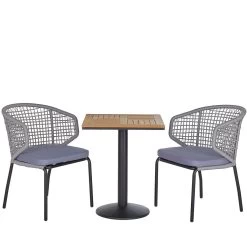 Een kleine oase van welzijn met de garantie om te ontspannen en je gedachten te laten afdwalen. Deze charmante balkonset bestaat uit een tafel met vierkant tafelblad, een centraal gemonteerde, stabiele, ronde tafelpoot en 2 stoelen in een gevlochten