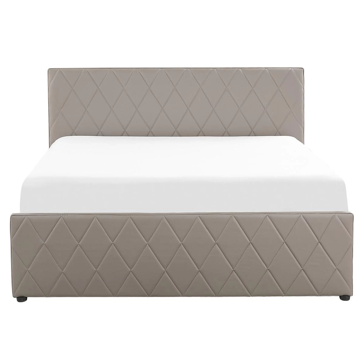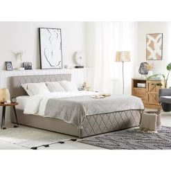 Een functioneel én elegant tweepersoonsbed met opbergruimte. Dit bed gemaakt van imitatieleer is niet alleen een echte eyecatcher in je slaapkamer, het zachte materiaal zorgt er ook voor dat je langer wilt blijven liggen. Het bed heeft een modern ru