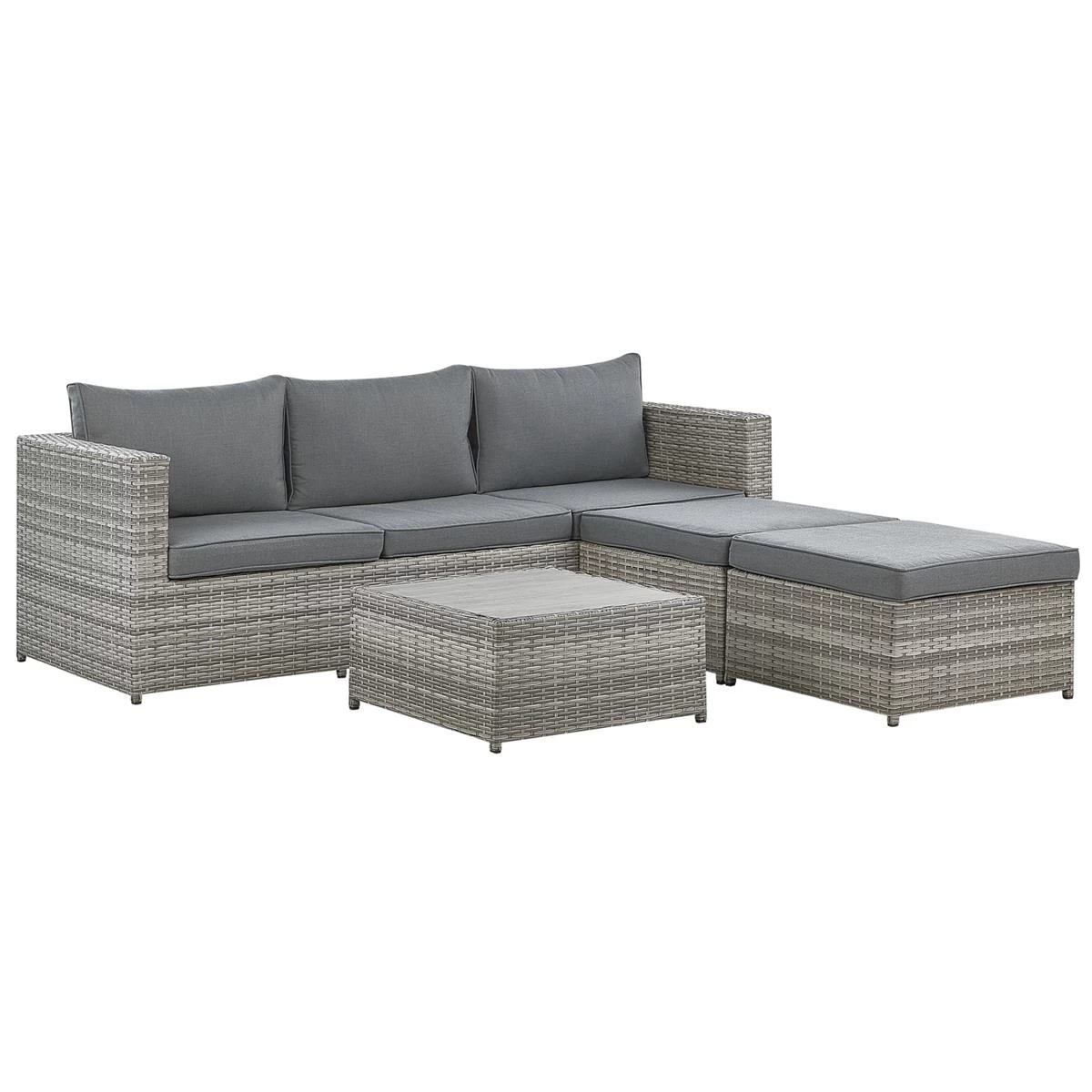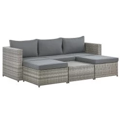 Deze functionele loungeset is een perfecte aanvulling op elke buitenruimte. Het wordt geleverd met 4 stukken die kunnen worden gecombineerd of apart kunnen worden geplaatst. De 3-zitsbank is aan beide zijden voorzien van een opklapbare zitting zodat