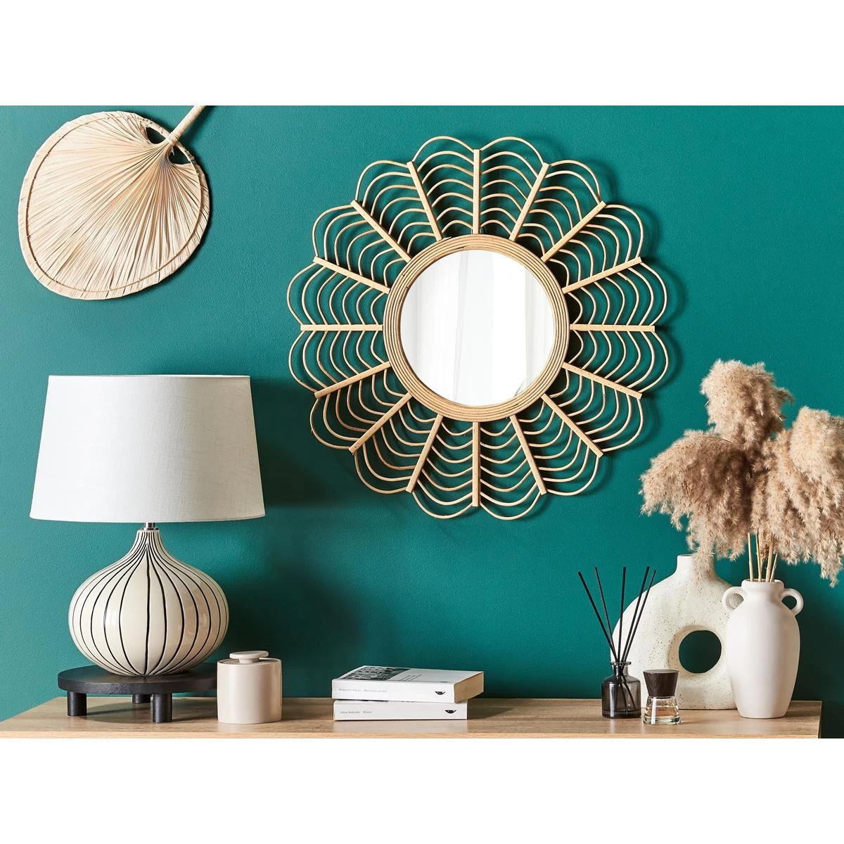 Breng een vleugje stijl in je huis met deze op de zon geïnspireerde wandspiegel. Het vormt een statement in een eetkamer of woonkamer, maar past ook in je huidige inrichting. Het bamboe frame vormt een perfecte aanvulling op de zonnestralen-construc