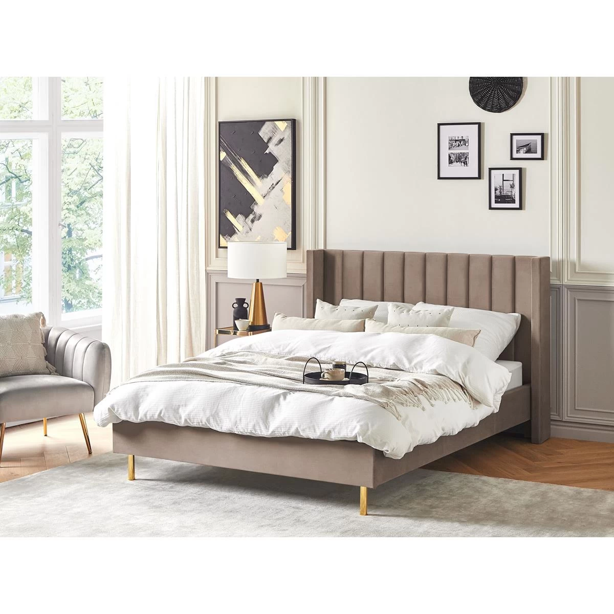 Voeg elegantie toe aan je slaapkamer en zorg voor ontspanning en rust. De bekleding van velours voelt aangenaam aan en is tegelijkertijd zeer duurzaam. De hele structuur wordt gedragen op korte, stabiele poten en de moderne look wordt benadrukt door