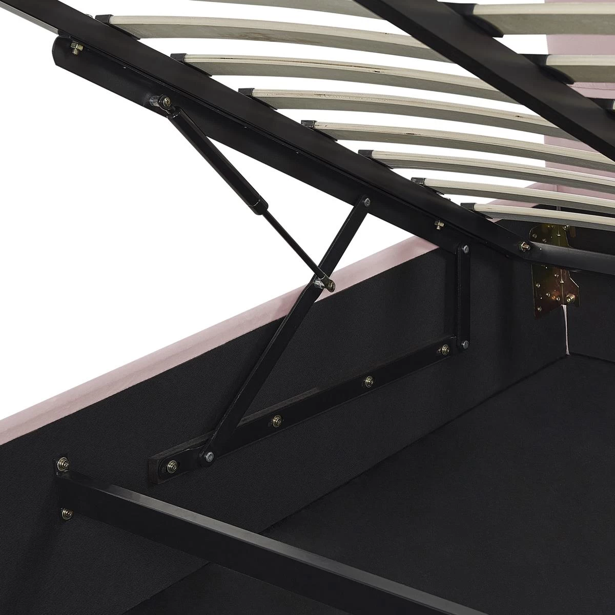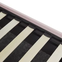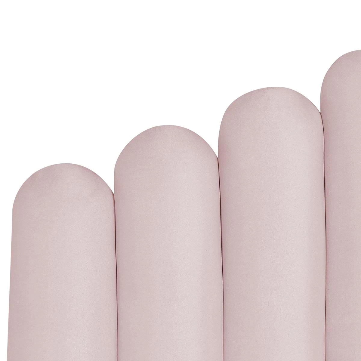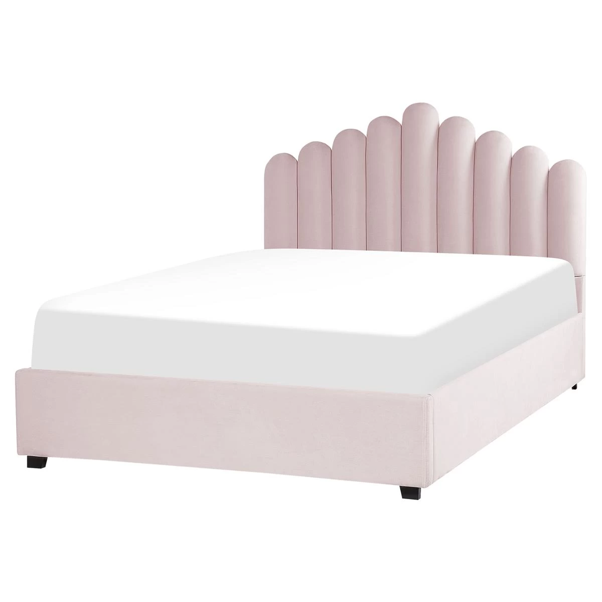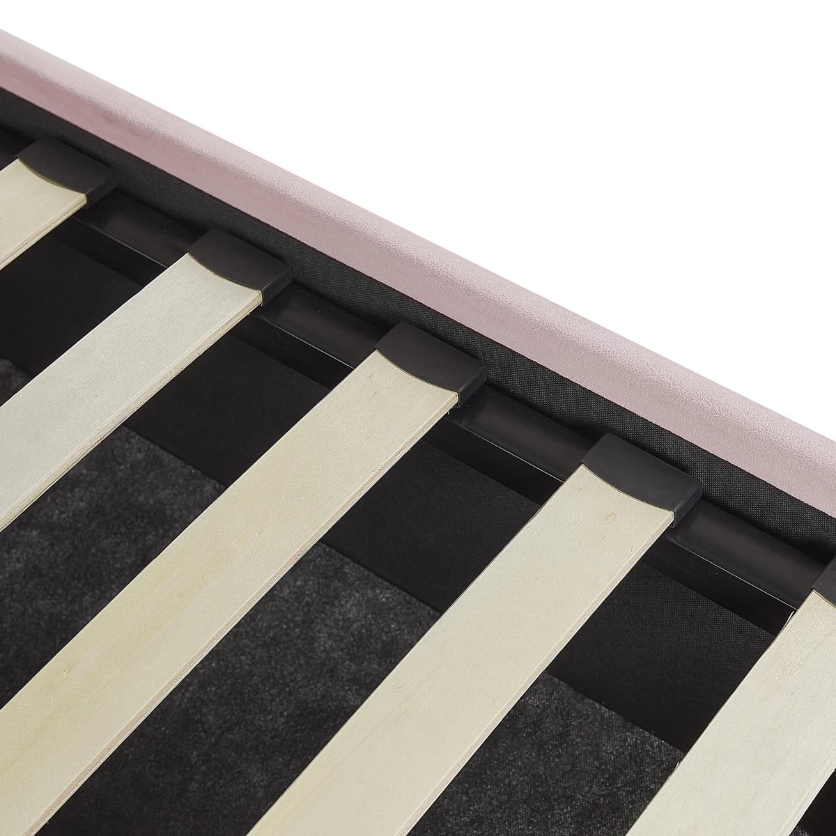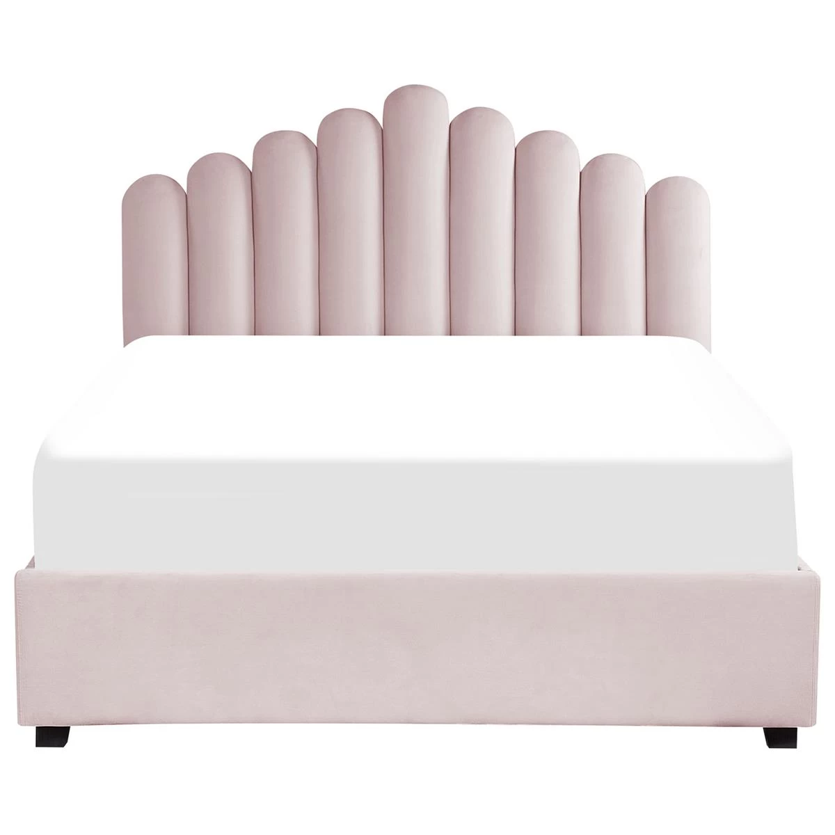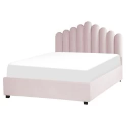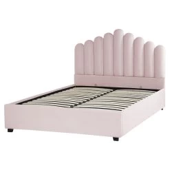 Voeg een beetje luxe toe aan je slaapkamer met dit prachtige bed. Het houten frame is volledig bekleed met zijdezachte bekleding van polyester fluweel in een roze kleur. Het bed heeft een prachtig hoofdeinde dat als een zeeschelp vormgegeven is voor