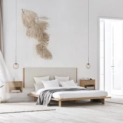 Hoofdbord Haven van Bolia heeft zijn natuurlijke uitstraling te danken aan de materialenmix van massief eikenhout en een zachte, luxe stof. Tip: maak jou slaapkamer helemaal af en combineer het hoofdbord met een houten bedframe in dezelfde houtkleur.