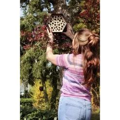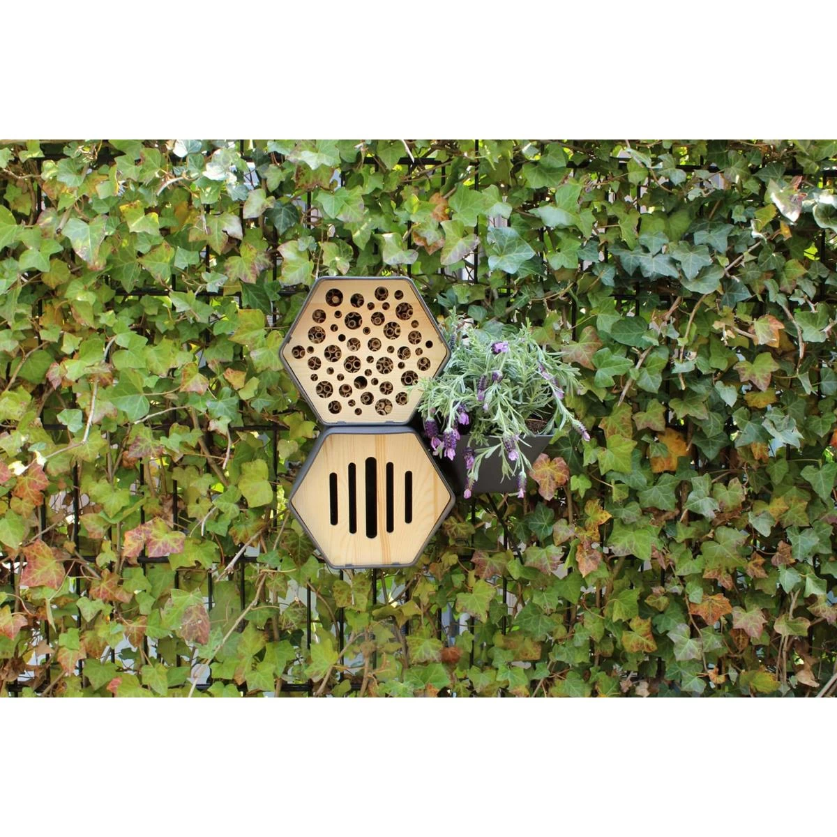 Als bijen zo belangrijk voor ons zijn, waarom worden ze dan bedreigd en waarom helpen we ze niet een handje? Als je een bijenhotel in jouw tuin plaatst bescherm je niet alleen de solitaire bij, maar help je ze ook bij hun voortplanting. Met de aanschaf van een bijenhotel draag je met een kleine bijdrage bij aan de natuur en de biodiversiteit. Het bijenhotel heeft een trendy hexagon vorm, waardoor deze makkelijk te combineren is met de andere producten uit deze collectie. Het huisje heeft een clip aan de achterkant, waarmee je het huisje makkelijk kan vastklikken aan een van de andere producten uit deze collectie. Op deze manier creëer je in een handomdraai een complete insectenhoek in jouw tuin. Het bijenhotel is makkelijk te combineren met een vlinderhotel of plantenbakje.