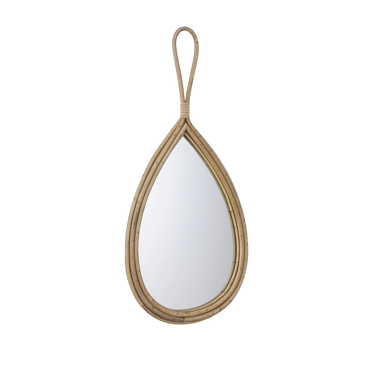 De Rainier spiegel uit de collectie van Casa Vivante is praktisch en tegelijkertijd bijzondere decoratie voor aan je muur. De rotan spiegel heeft de vorm van een druppel en kan gemakkelijk opgehangen worden aan het hengsel.