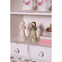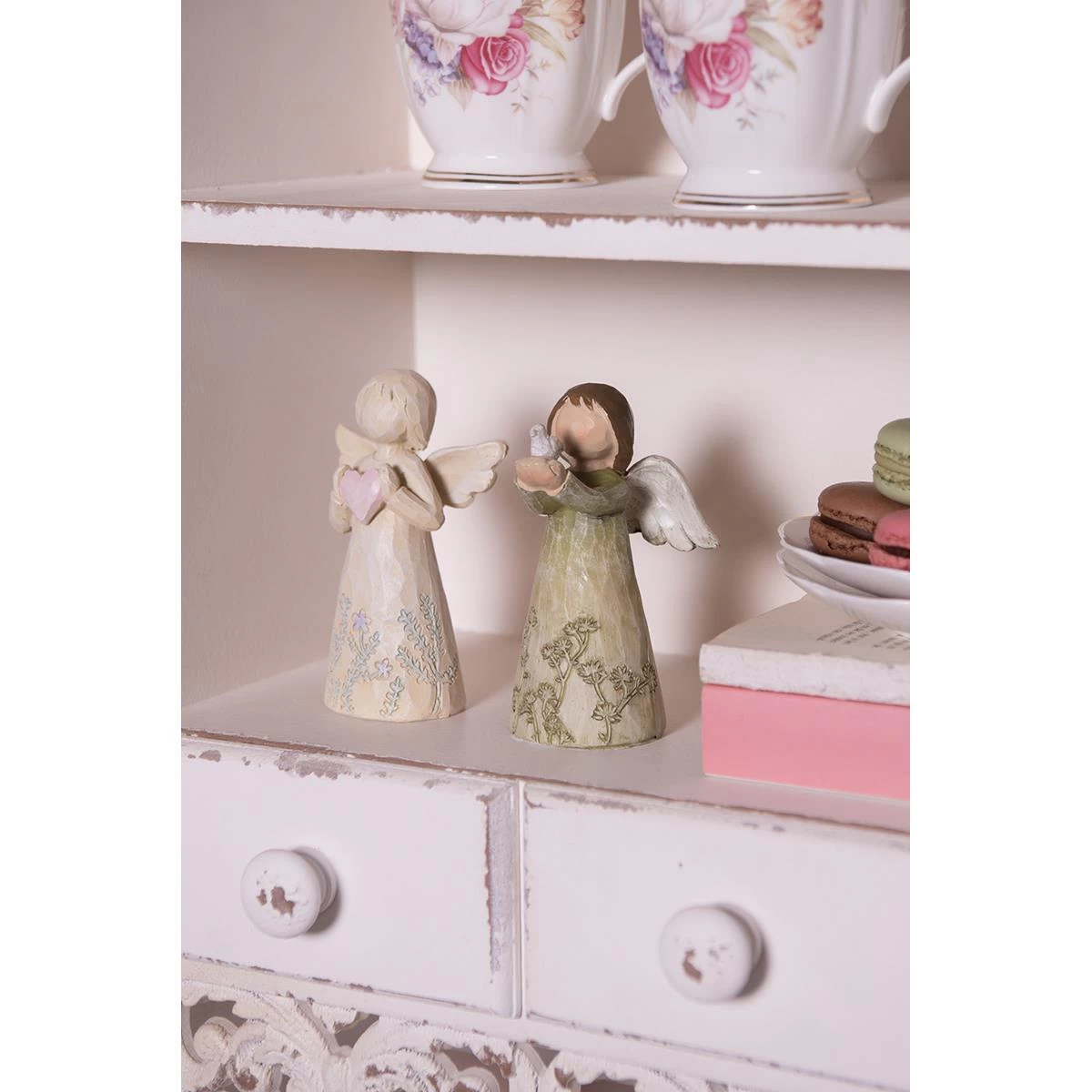 Mooi groen engelenbeeld met een duif. Gemaakt van polyresin, in een romantische stijl. Het brengt de kerstsfeer in elk huis.