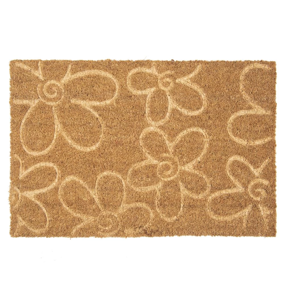 Bruin kokosvezel deurmat met bloemen motief van het merk Clayre & Eef.