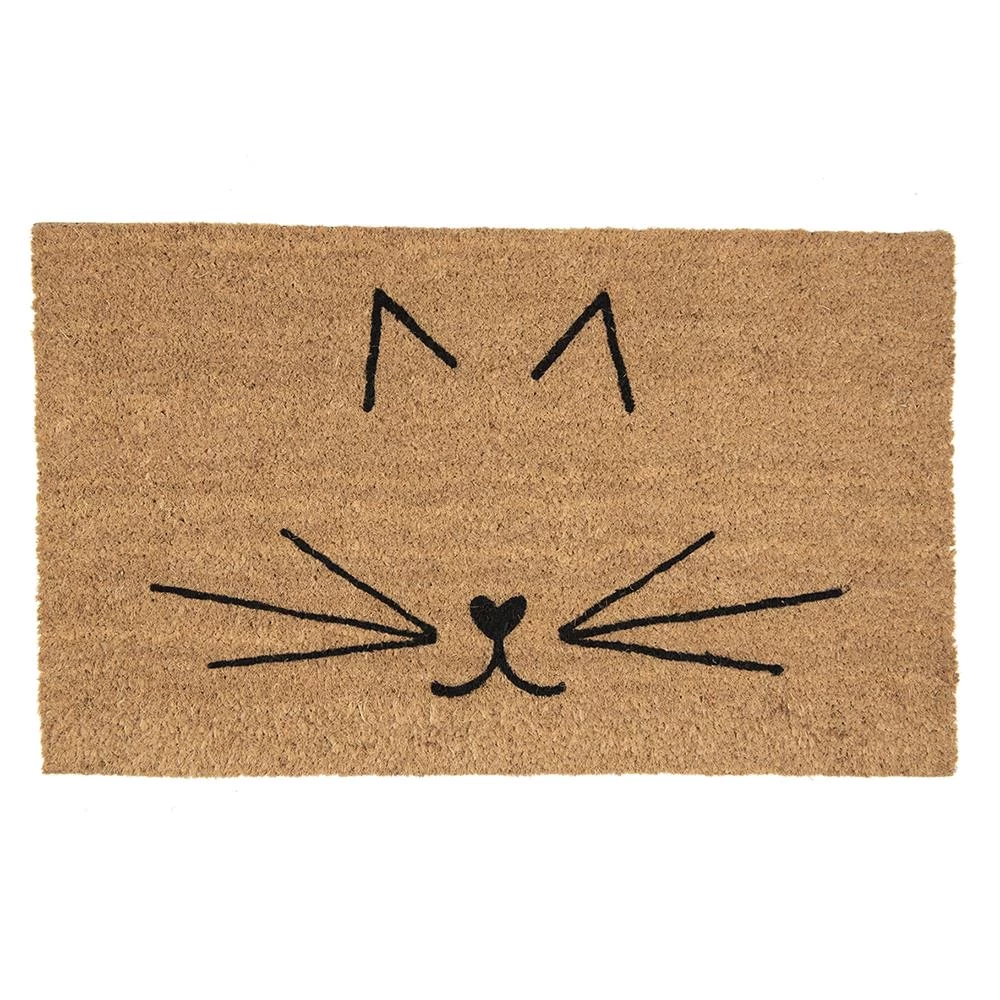 Bruine deurmat met een motief van een kat erop, van het merk Clayre & Eef.