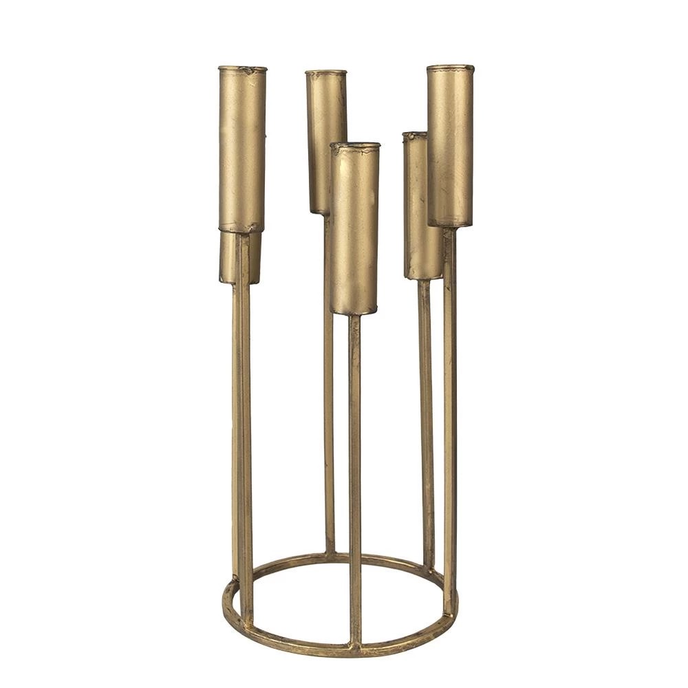 Decoratieve goudkleurige, ronde, ijzeren kandelaar, met een vintage uitstraling, van het merk Clayre & Eef. Geschikt voor zes kaarsen met een maximale doorsnede van 2 cm. Afmeting 17x16x37 cm.