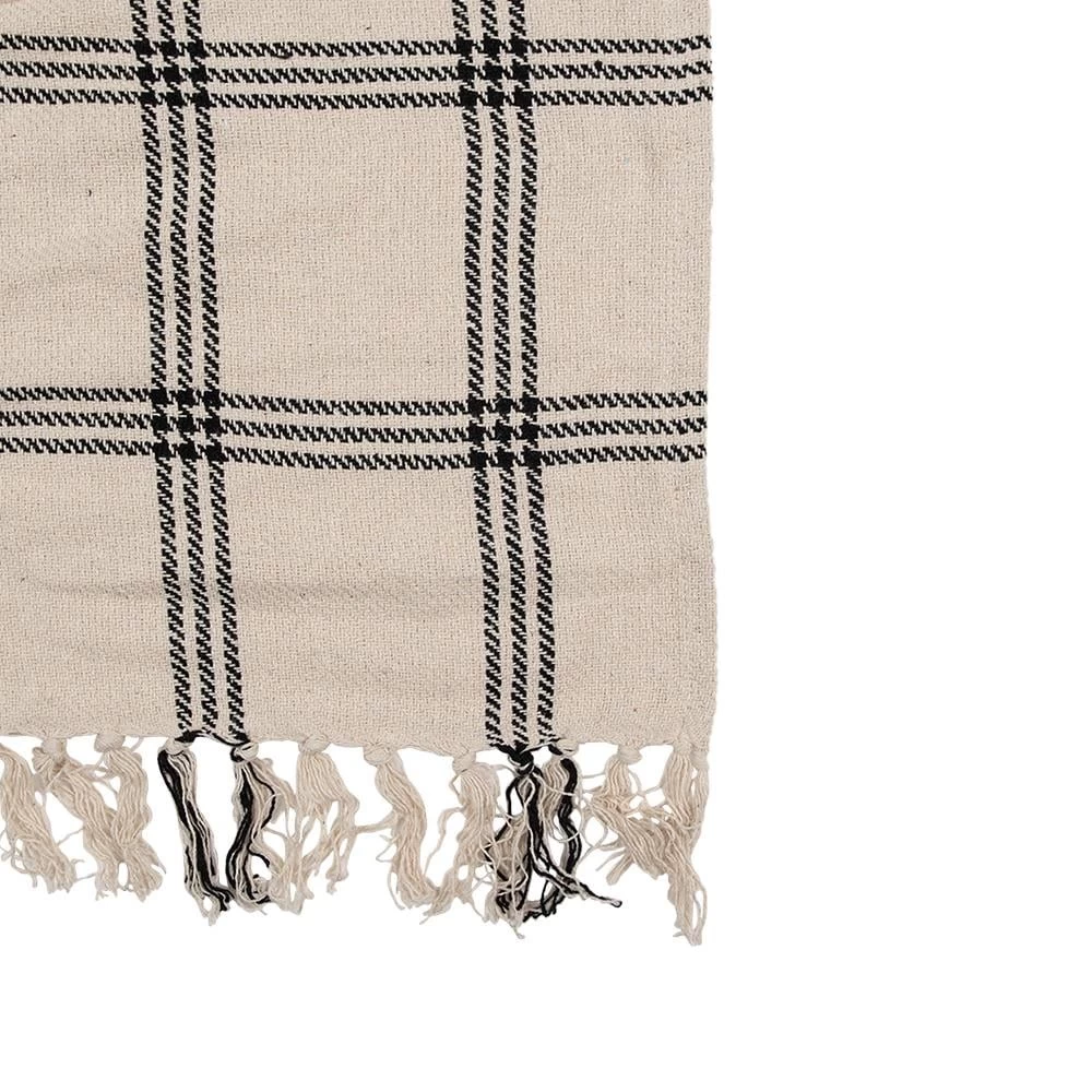 Mooie katoenen beige deken. Een praktisch en decoratief element in elk interieur. Vanwege de sterke geur van chemische stoffen raden we aan om de deken eerst in de wasmachine te wassen zonder de droger te gebruiken.