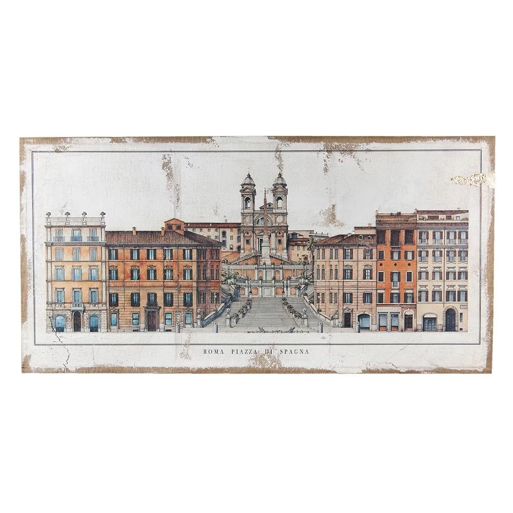 Clayre & Eef Schilderij 120×60 cm Bruin Beige Jute Stad Roma Pizza Di Spagna