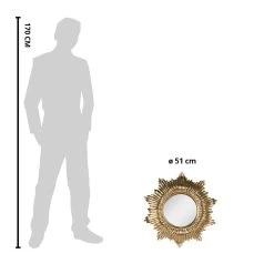 Decoratieve ronde wandspiegel, met een goudkleurige rand, in een vintage stijl, van het merk Clayre & Eef. Met één schroef hangt deze spiegel al aan de muur. Afmeting Ø 51×3 cm. Afmeting spiegel Ø 22 cm
