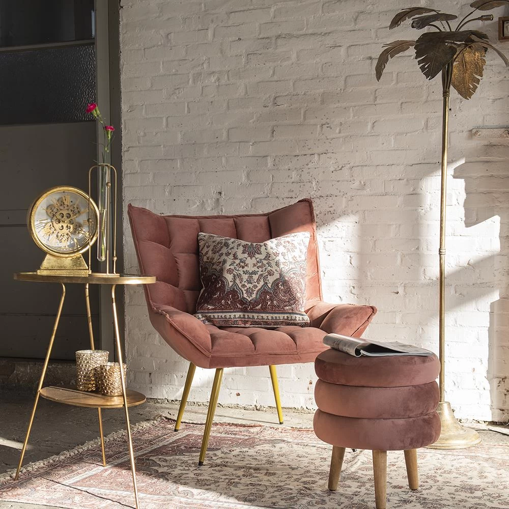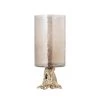 Theelichthouder van goudkleurig glas, in een romantische stijl met een landelijke uitstraling.