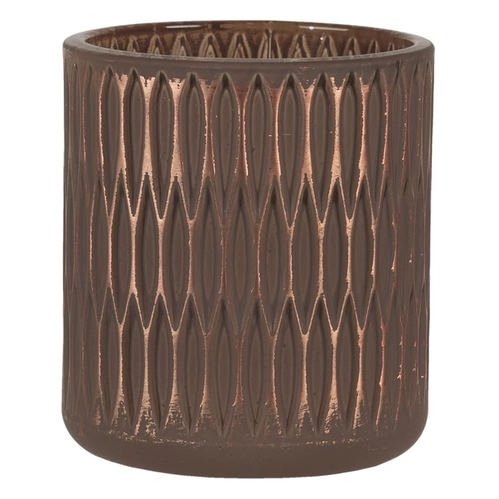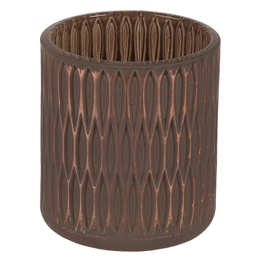 Clayre & Eef Theelichthouder Ø 8×9 cm Bruin Glas Rond