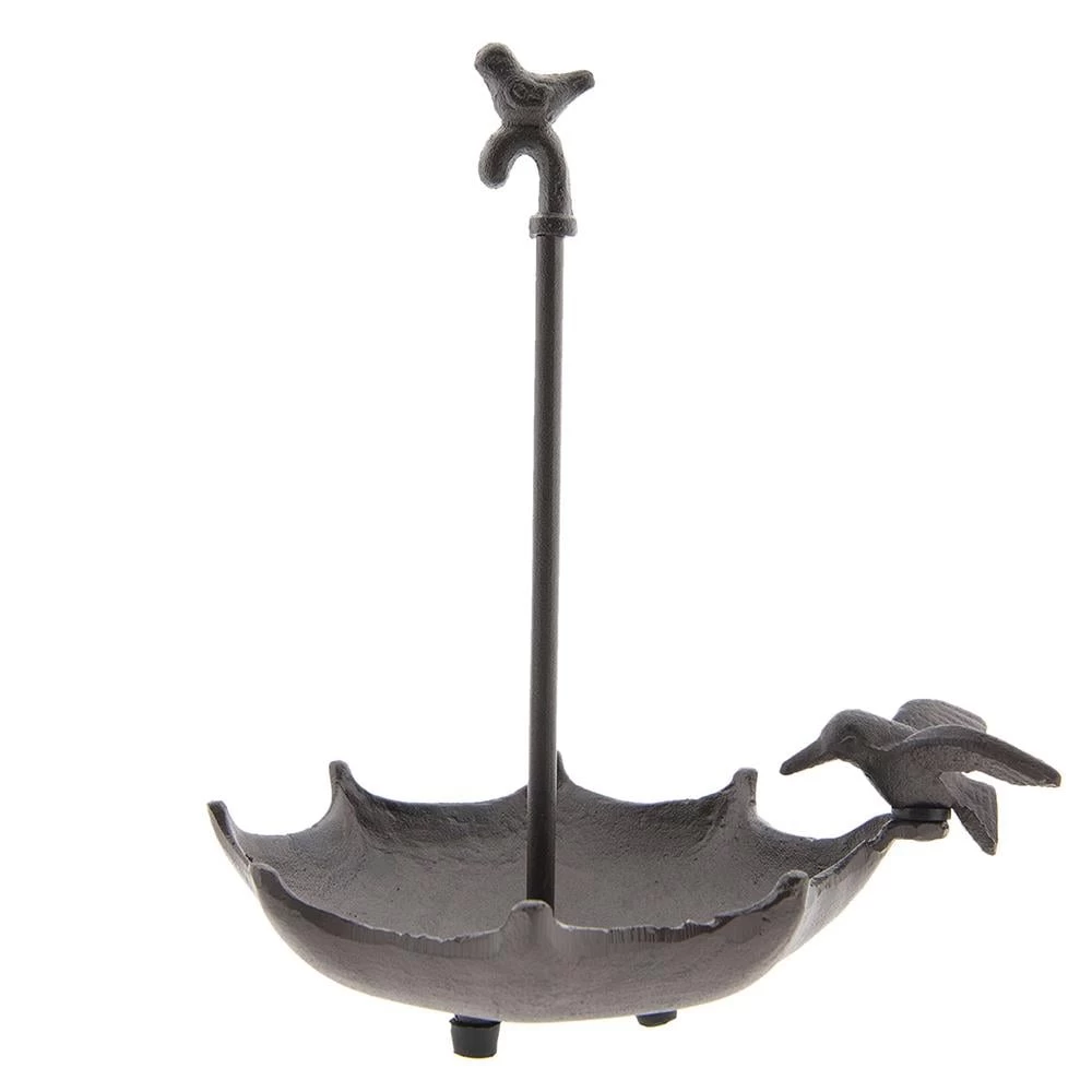 Bruin metalen landelijke voederbak in de vorm van een paraplu met twee vogels van het merk Clayre & Eef.