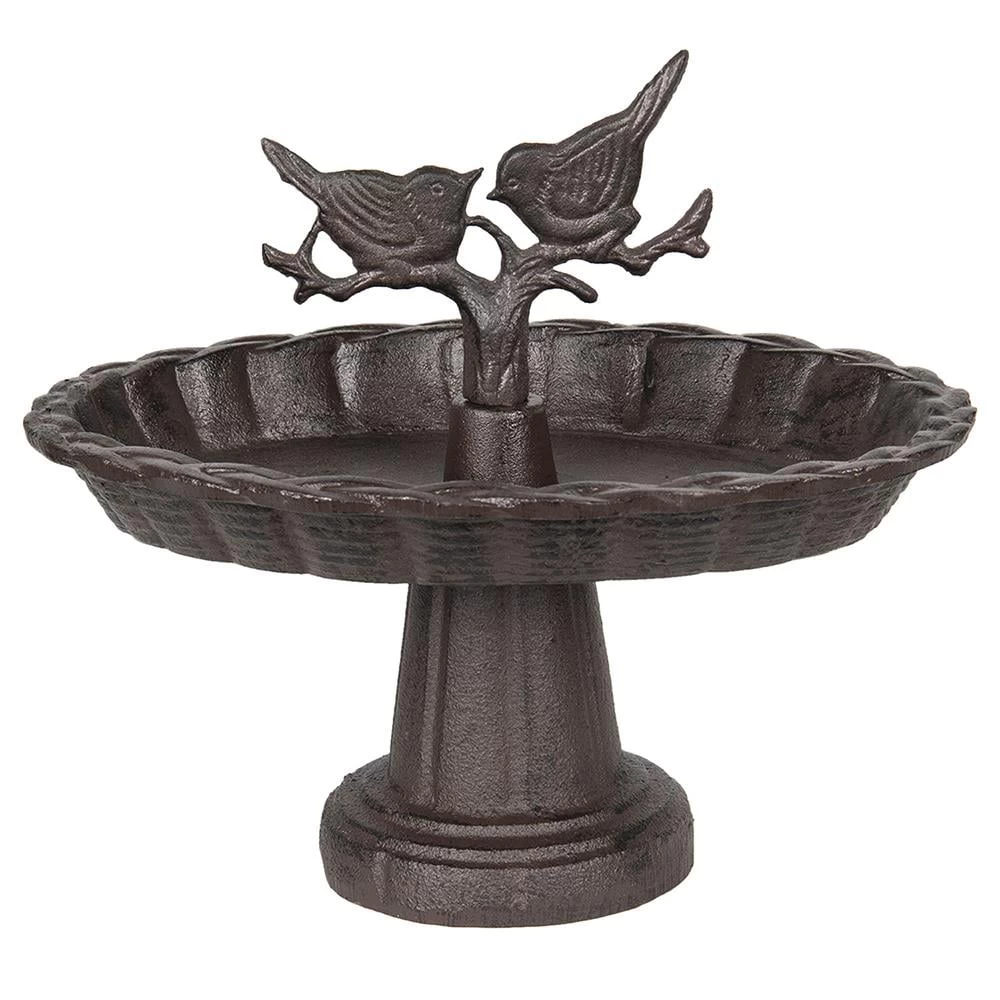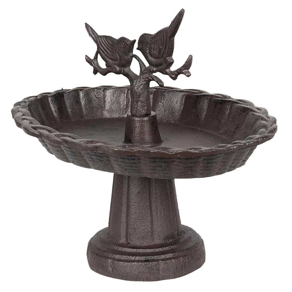 Bruin metalen landelijke voederbak op een voet met twee vogels op een takje van het merk Clayre & Eef.