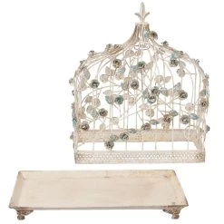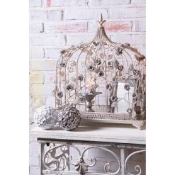 Clayre & Eef Vogelkooi decoratie 42x21x50 cm Wit Ijzer Rechthoek Bloemen