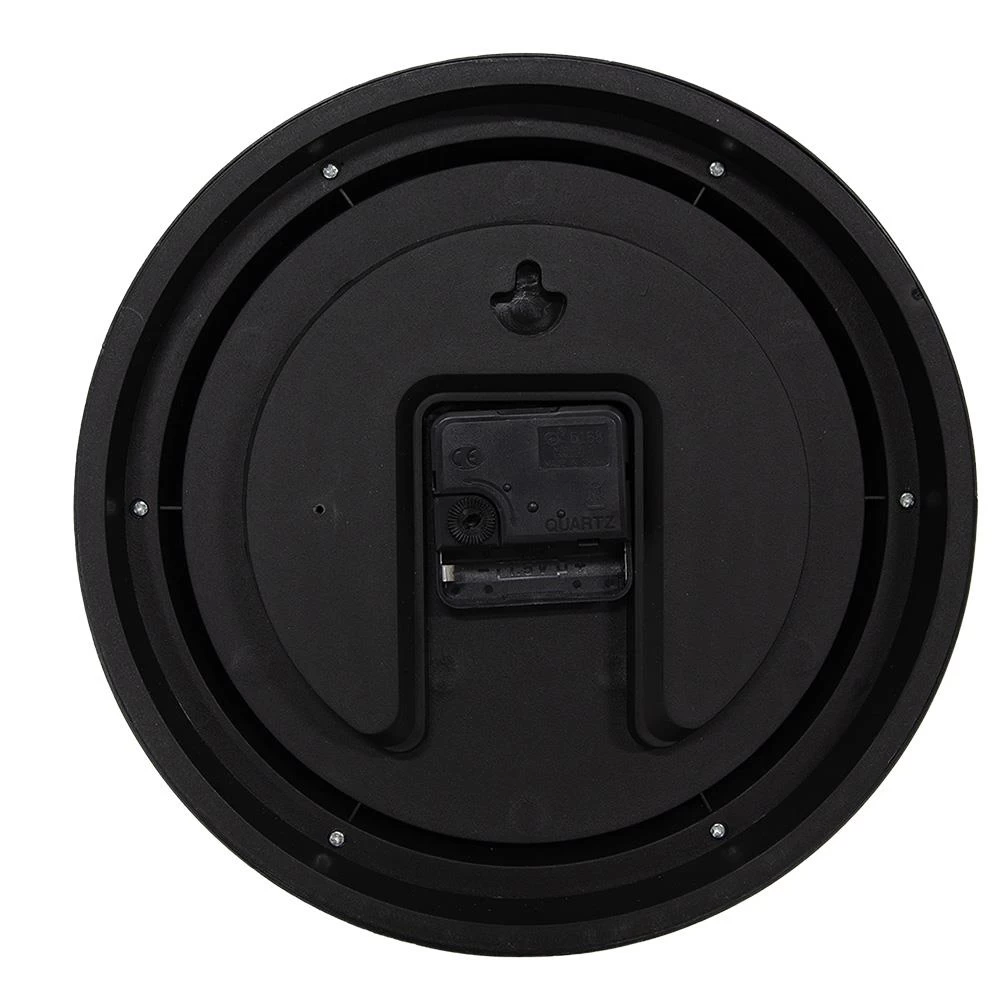 Decoratieve zwarte met grijze wandklok, gemaakt van kunststof en glas, in een landelijke stijl. Van het merk Clayre & Eef. Werkt op 1xAA batterij (niet inbegrepen). Eenvoudig op te hangen met 1 schroef.