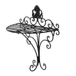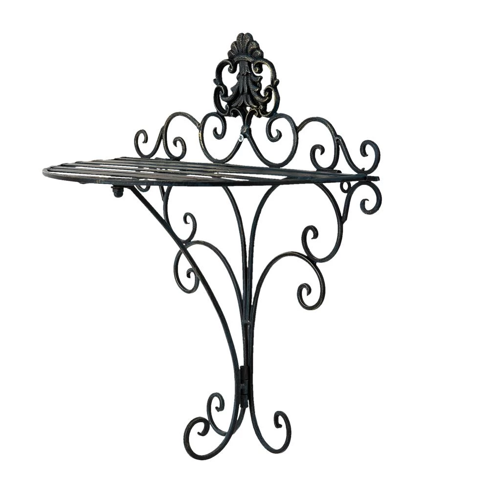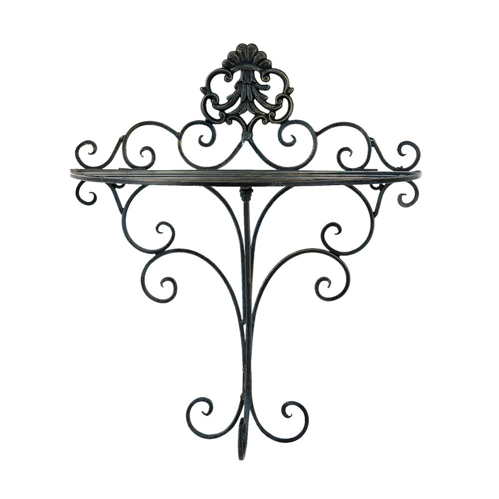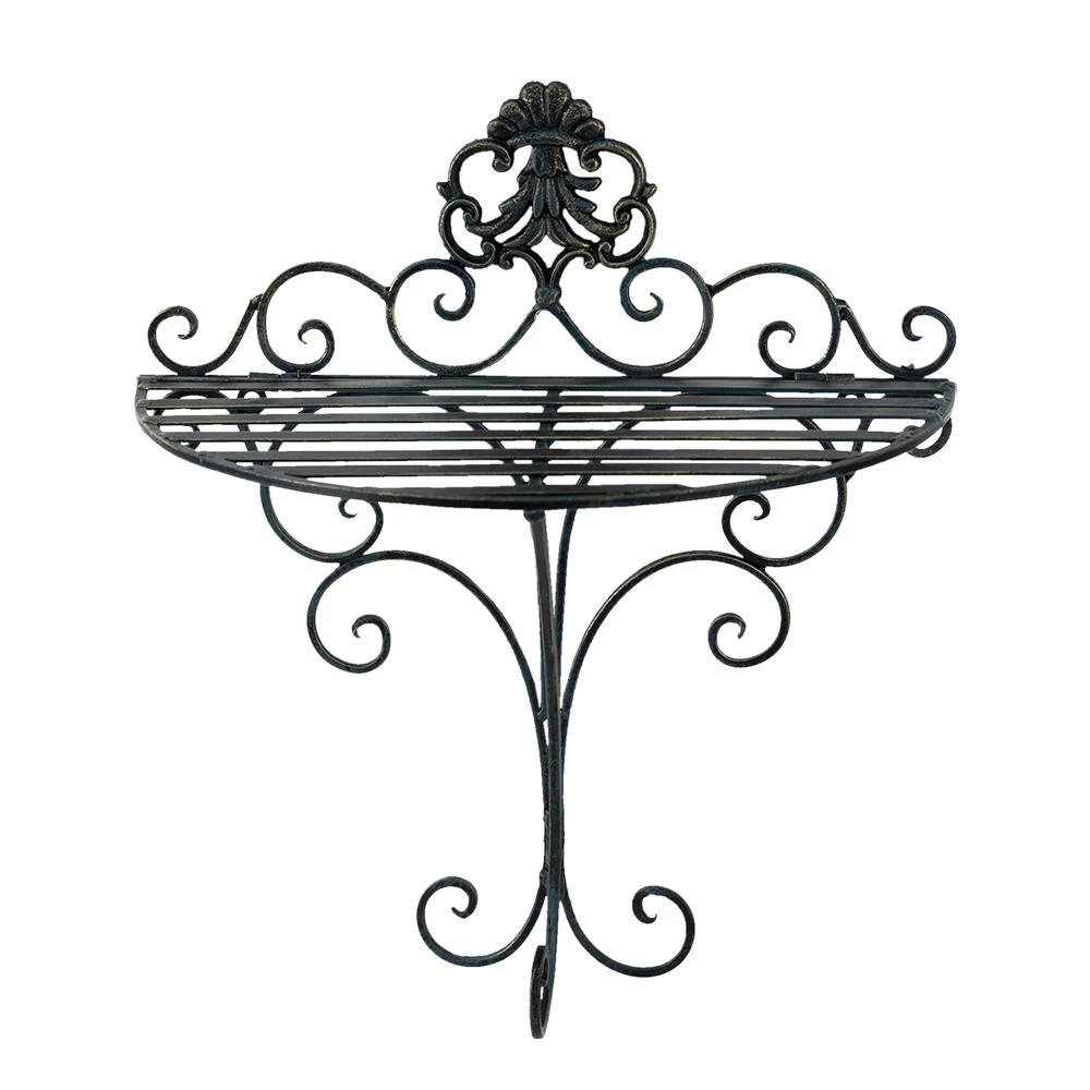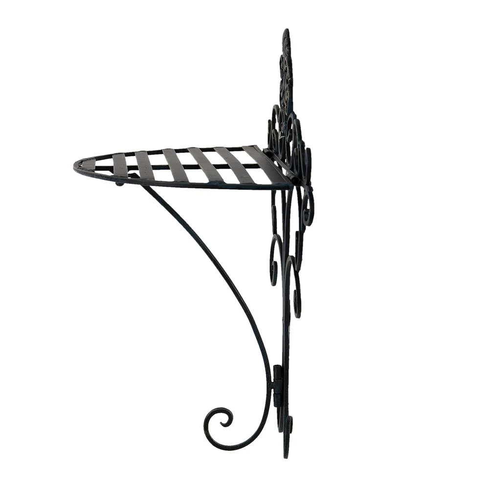 Landelijk zwart ijzeren wandrek/muurrek sierlijk bewerkt met krullen en een lelie van het merk Clayre & Eef.
