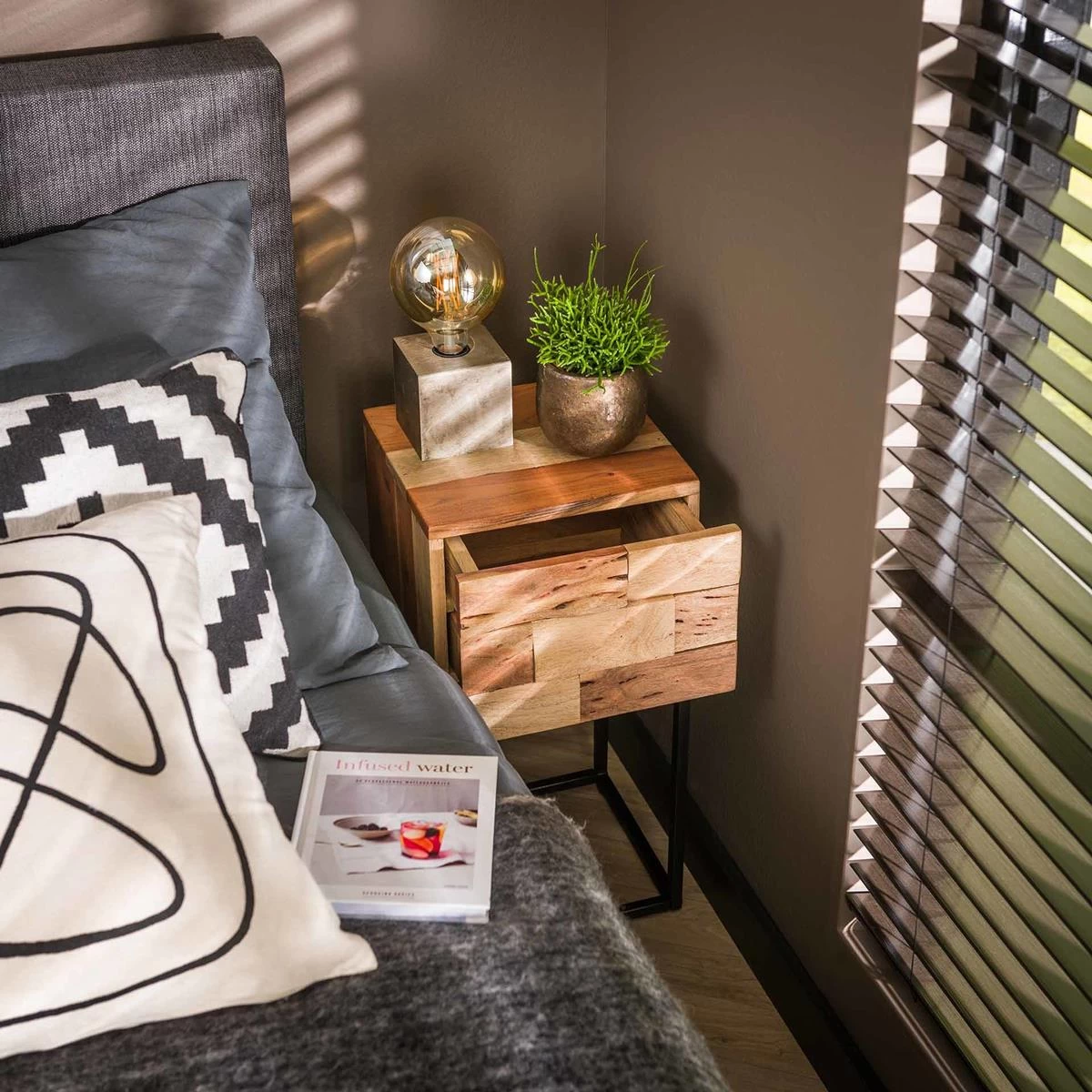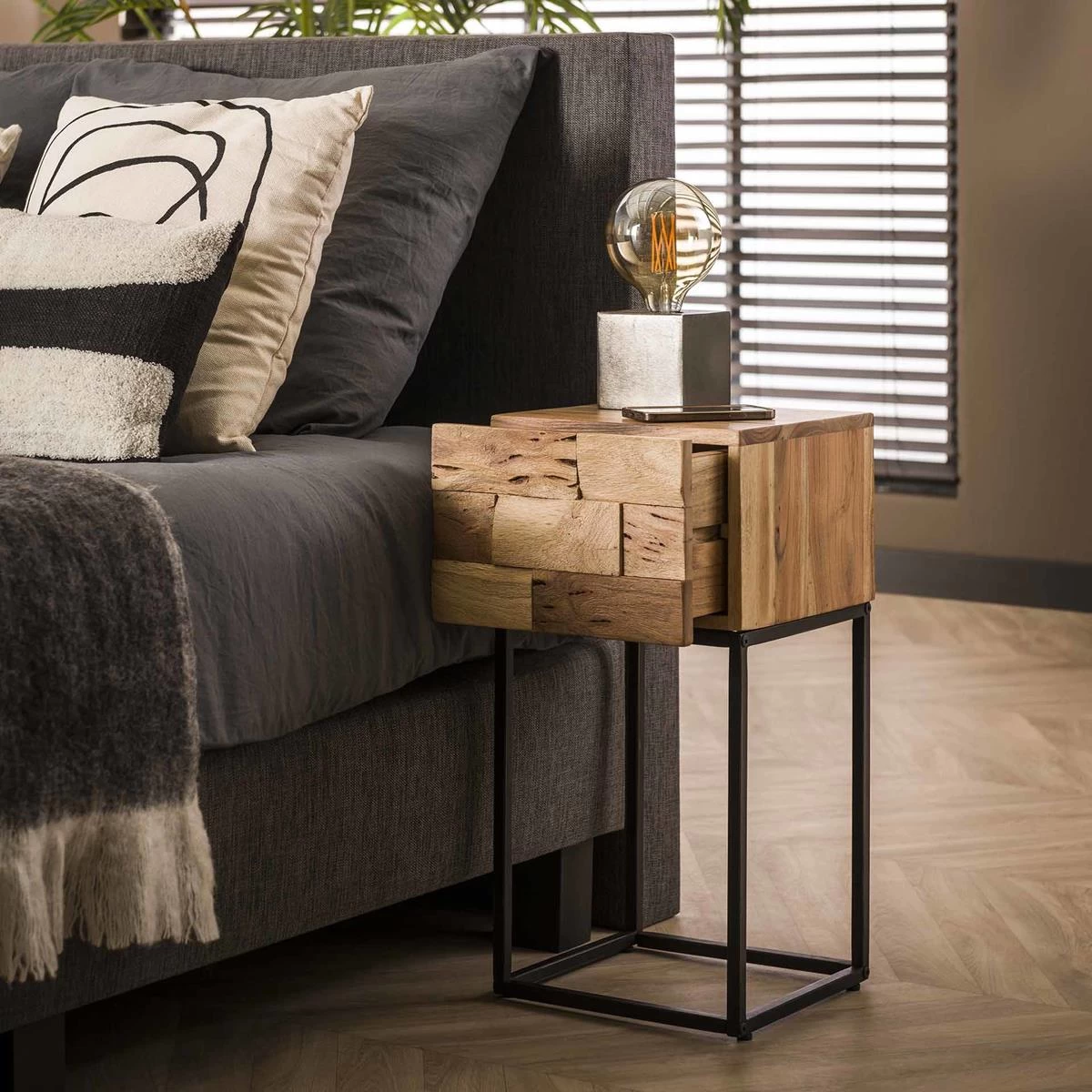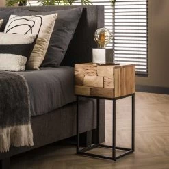 Industry Sandblast – Nachtkastje – XS – massief acacia – 1 lade – gezandstraald – metalen frame