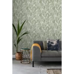Creëer thuis je eigen Urban Jungle met dit behang met palmbladeren in vergrijsd olijfgroen en maak van je muur een echte eye-catcher. Dit hippe behang past helemaal bij de tropische botanische look. Wil je de look compleet maken? Combineer dit behang