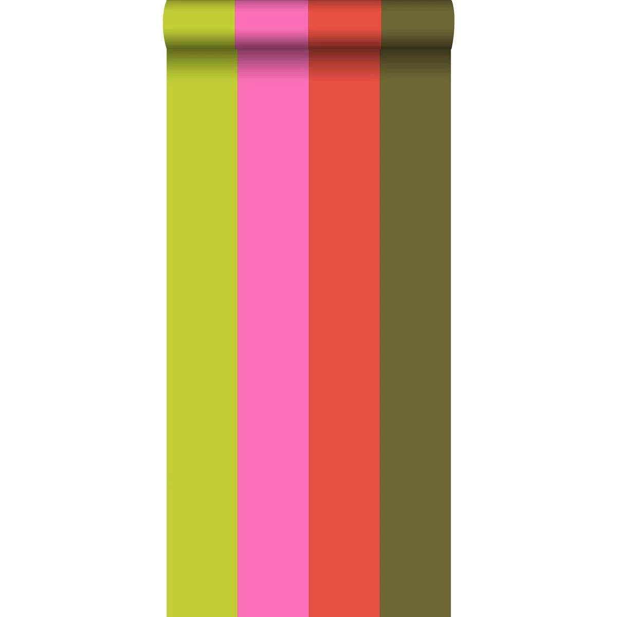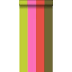 Van dit hippe behang met strepen in limegroen en roze gaat elk meisjeshart sneller kloppen. Gecombineerd met lichte kleuren, natuurlijke materialen en leuke accessoires creëer je met dit behang een super gave en gezellige meidenkamer.A