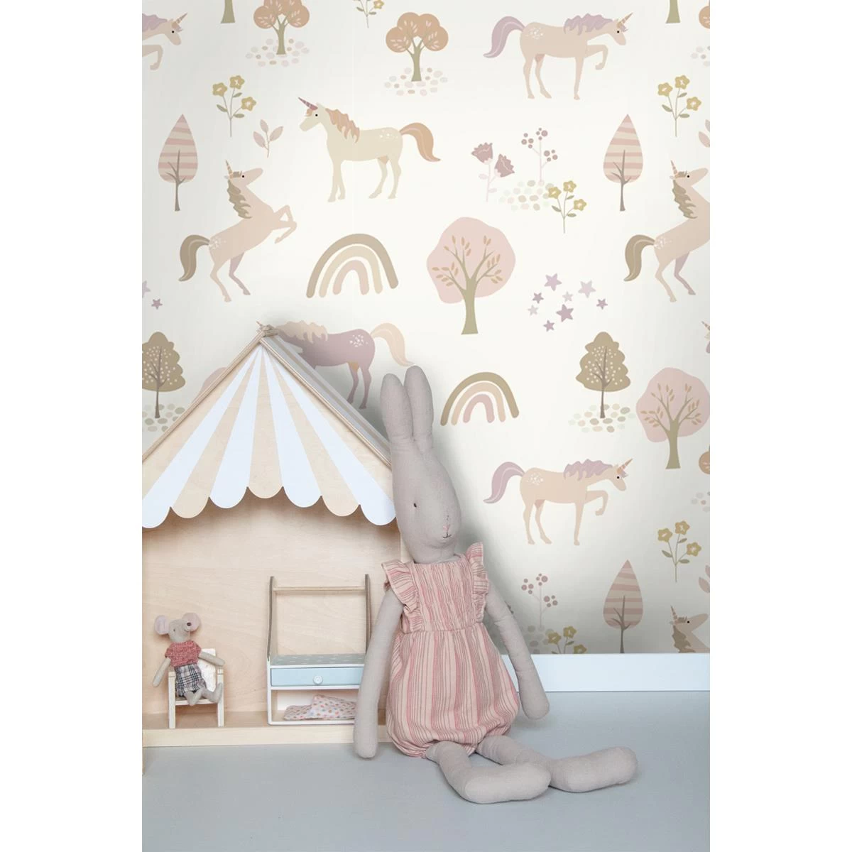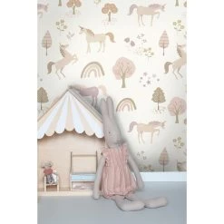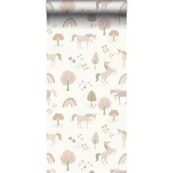 Met dit hippe meisjesbehang met unicorns in beige en zacht roze tover je elke kamer om tot een gezellige kinderkamer. Gecombineerd met lichte kleuren en natuurlijke materialen creëer je met dit kinderbehang een rustgevende en tegelijkertijd warme en