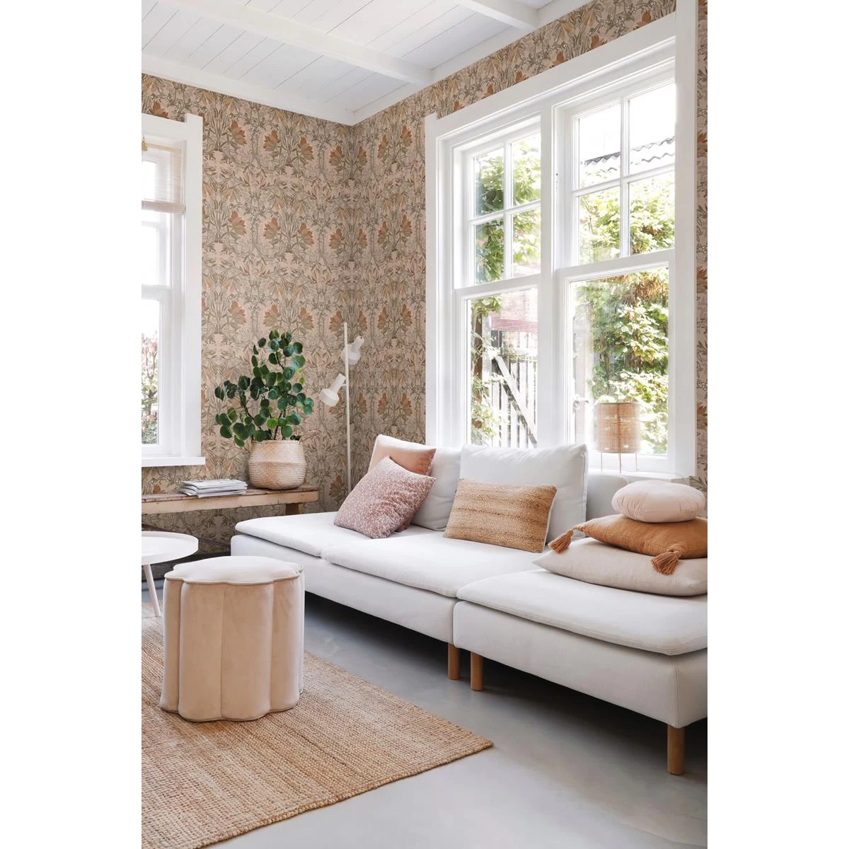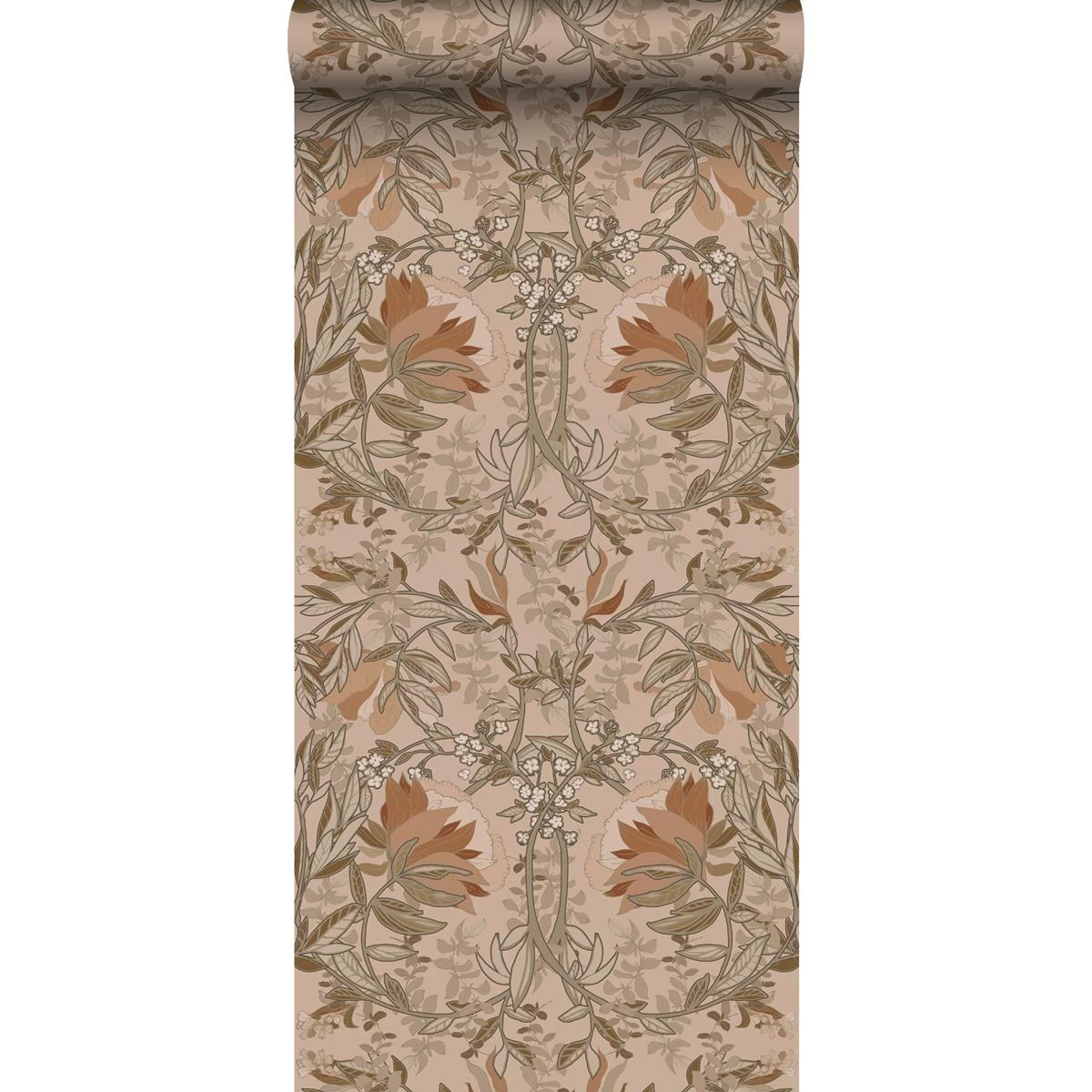 Creëer een gezellige en warme vintage look in huis met dit behang met vintage bloemen in art nouveau stijl in beige en oudroze. Het behang roept een heerlijk nostalgisch gevoel op en met vintage accessoires en retro meubels maak je het sfeertje helem
