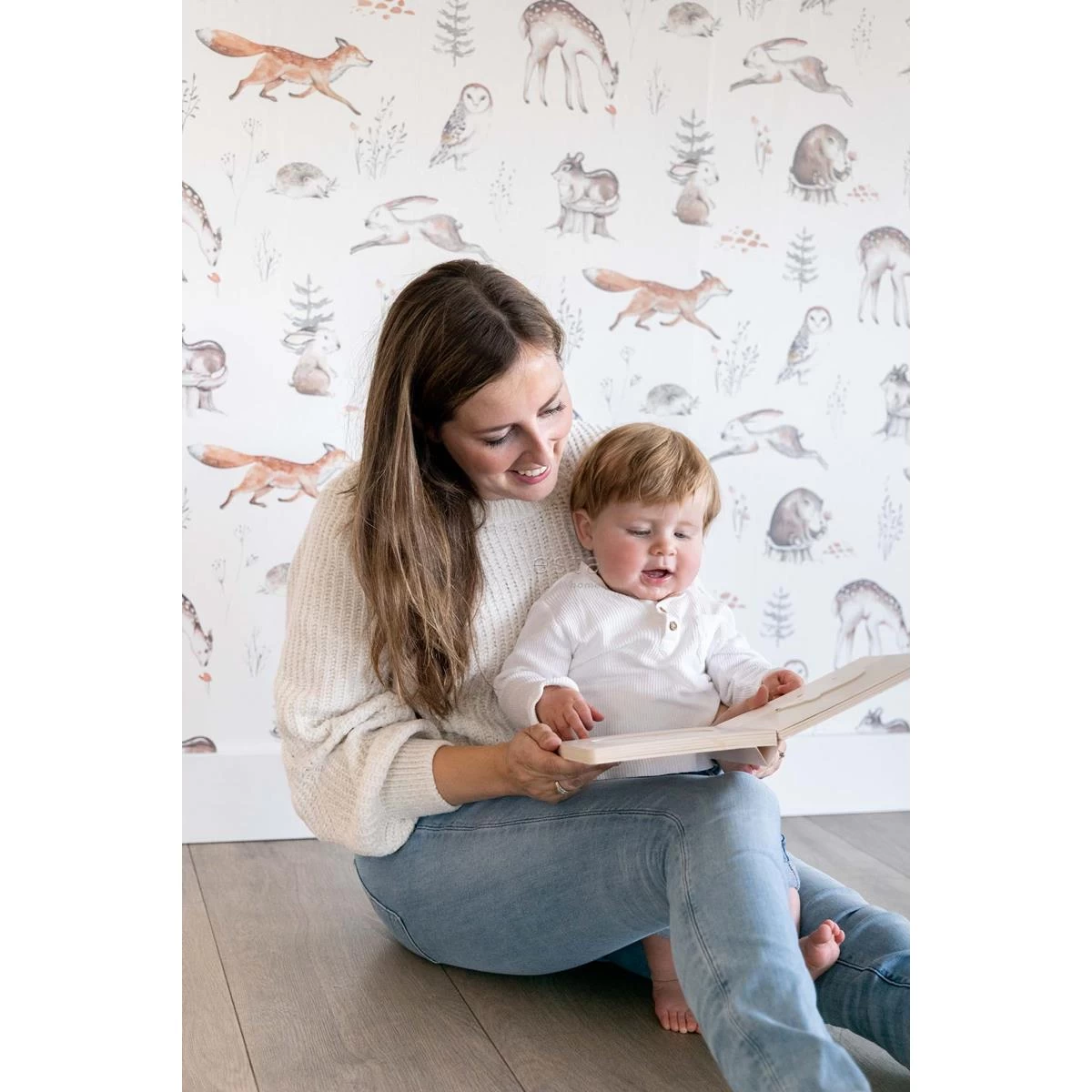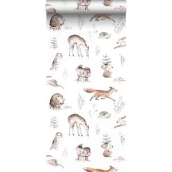 Creëer een fijne vintage sfeer in de kinderkamer met dit schattige behang met vintage bosdieren in wit, oranje en bruin. Geniet van de vrolijke tekeningen en ontdek samen de vele diertjes. Combineer dit behang met zachte kleuren, houten meubelen en g