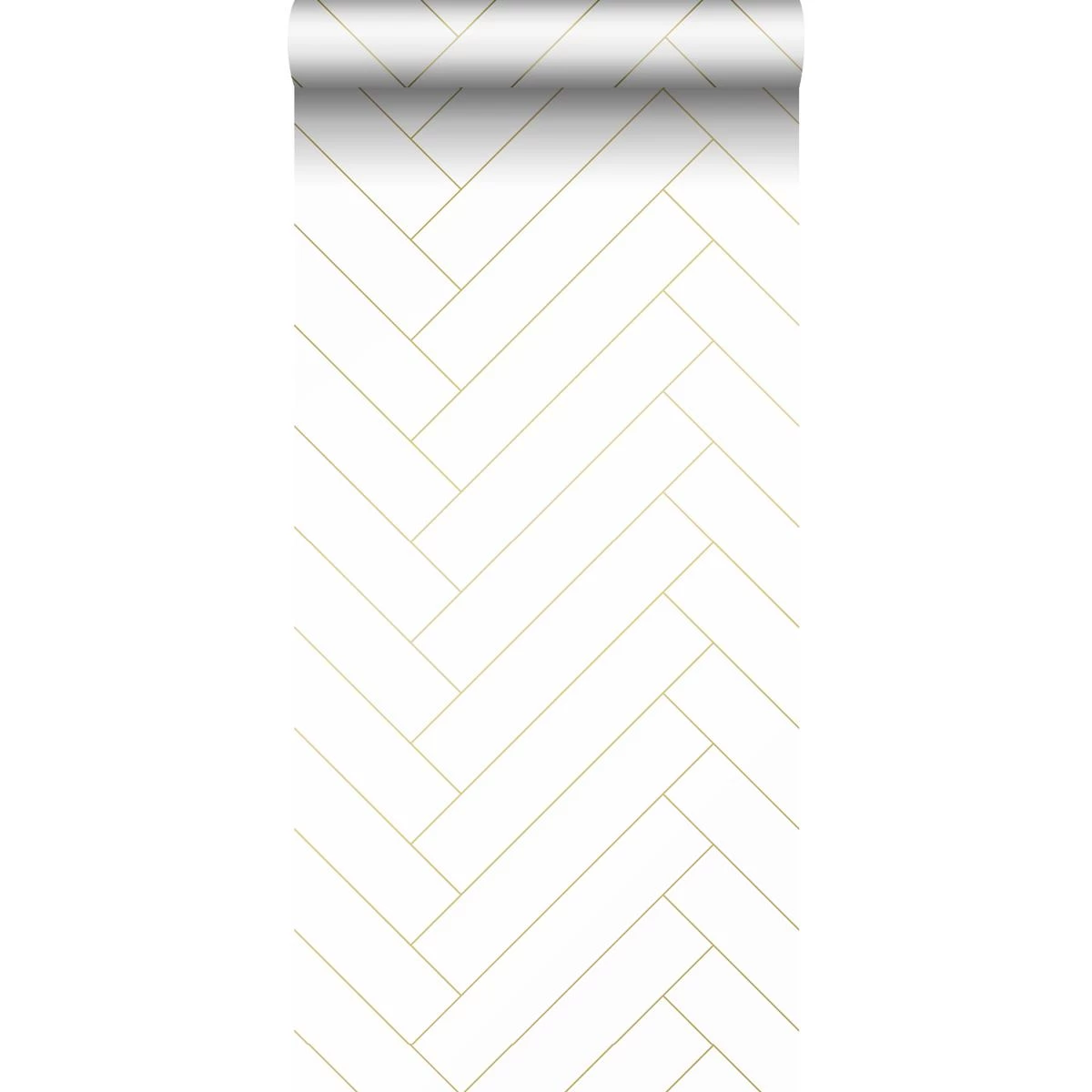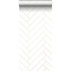 Wow! Deze geweldige print met visgraat motief in wit en goud maakt je wand tot een echte eye-catcher en creëert een gezellige sfeer. Kortom: een absolute must-have!Afmetingen, herhaling en aansluitingDe afmetingen van dit b