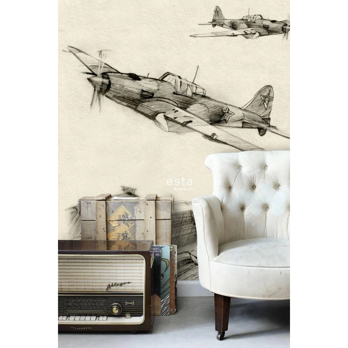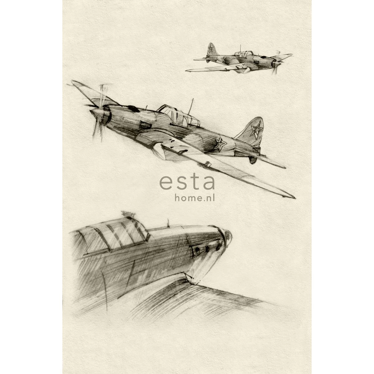 Creëer een stoere vintage look in huis met dit behang met getekende vliegtuigen in beige en grijs en maak je van je muur een geweldige eye-catcher.Afmetingen, herhaling en aansluitingDe afmetingen van dit fotobehang zijn 18